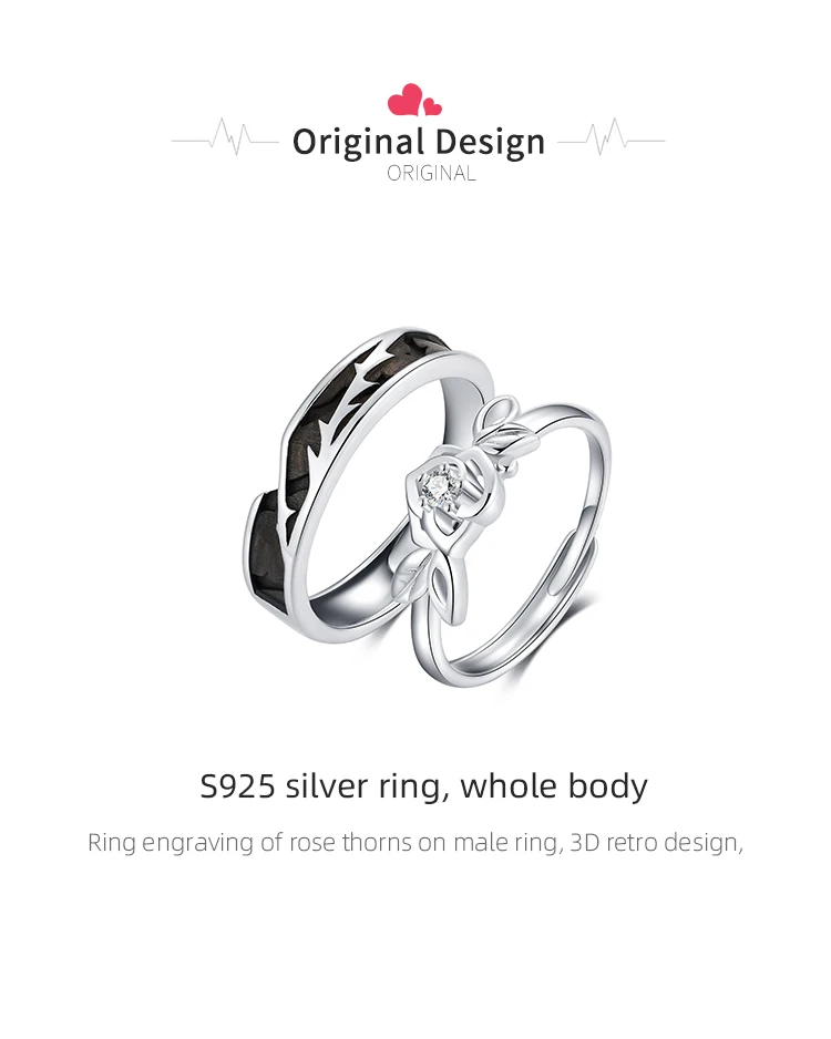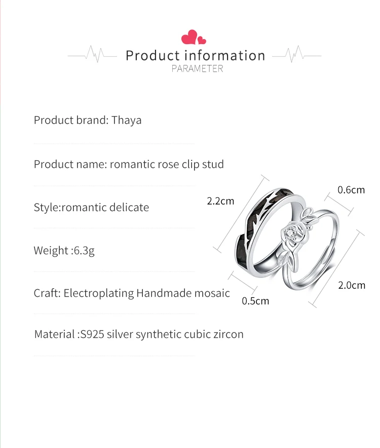 Thaya, оригинальный дизайн, 925 пробы, серебро, кристалл, романтическая роза, пара колец для помолвки, подарок для женщин, кольца