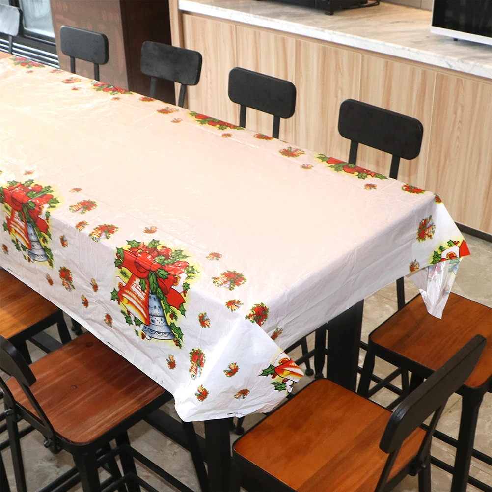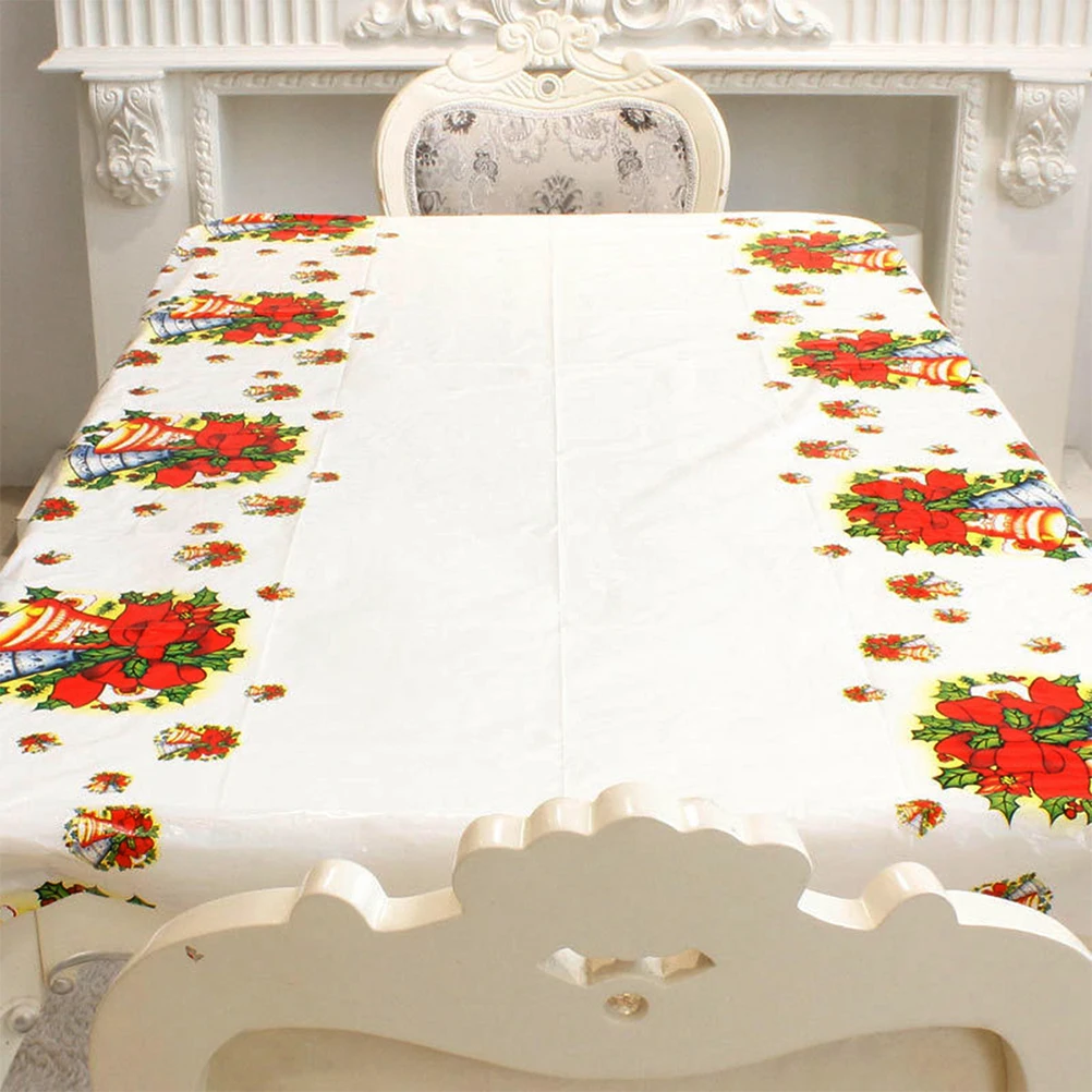 1*110x180 см Рождественская скатерть с рисунком колокольчика прямоугольная одноразовая скатерть из ПВХ скатерти для скатертей для рождественской домашней вечеринки декор