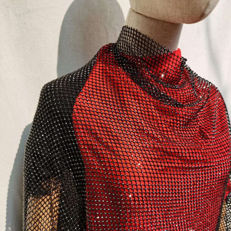 Высококачественная эластичная сетчатая сетка из спандекса с кристаллами черного цвета