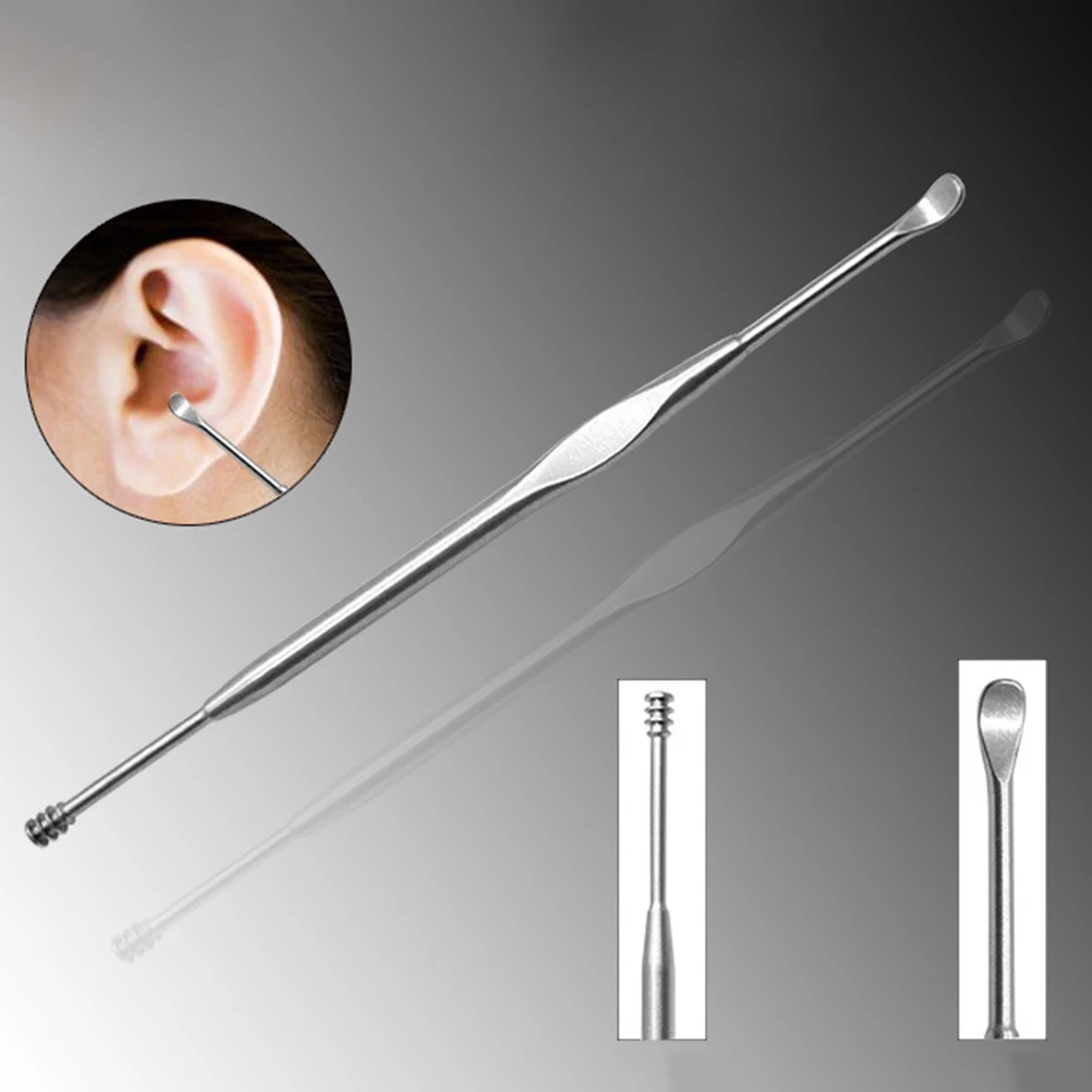 2 шт., спиральная форма, портативная, двойная, бытовая, нержавеющая сталь, Ушная ложка, ушной воск, очиститель, удалитель ушной серы для взрослых мужчин