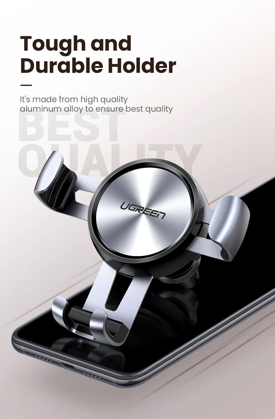 (1) держатель автоматически блокирует телефон при помощи гравитационного сцепления. Так оноПоддерживает только вертикальный режим