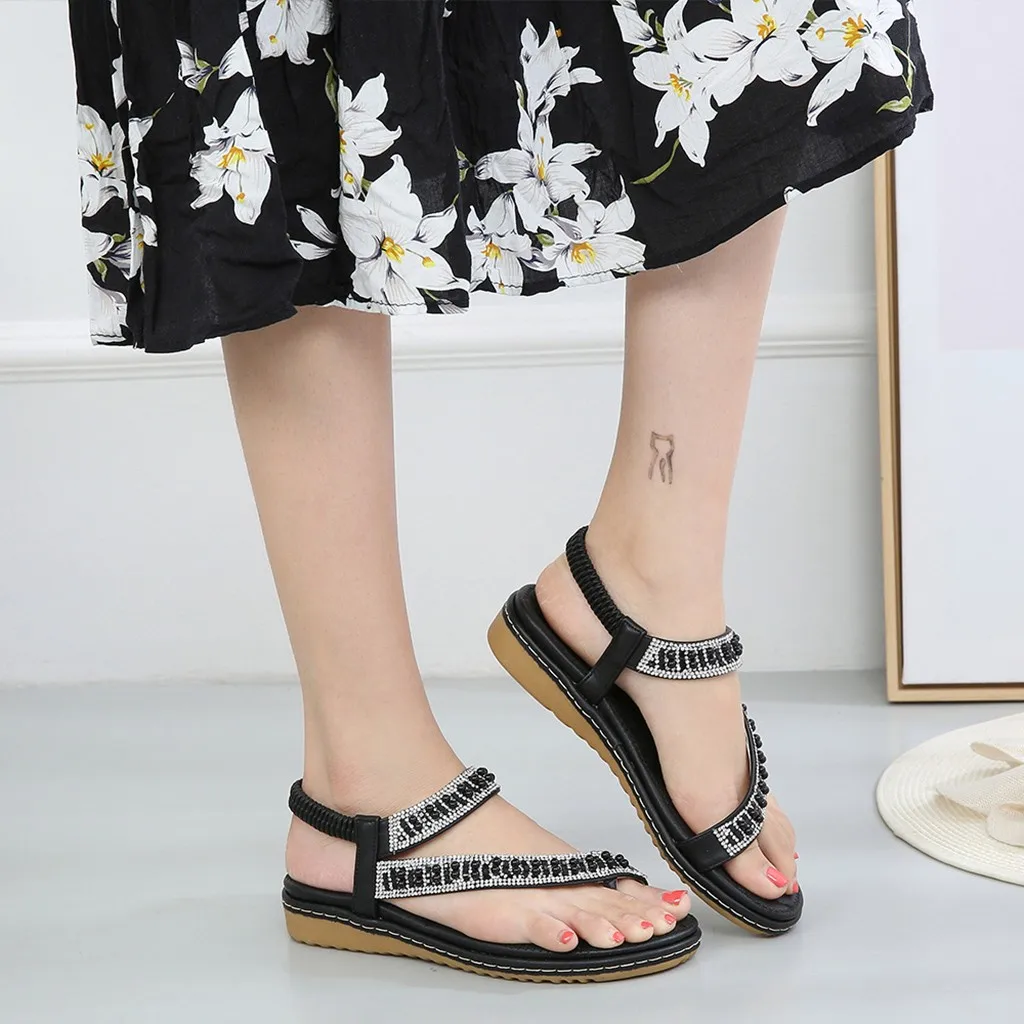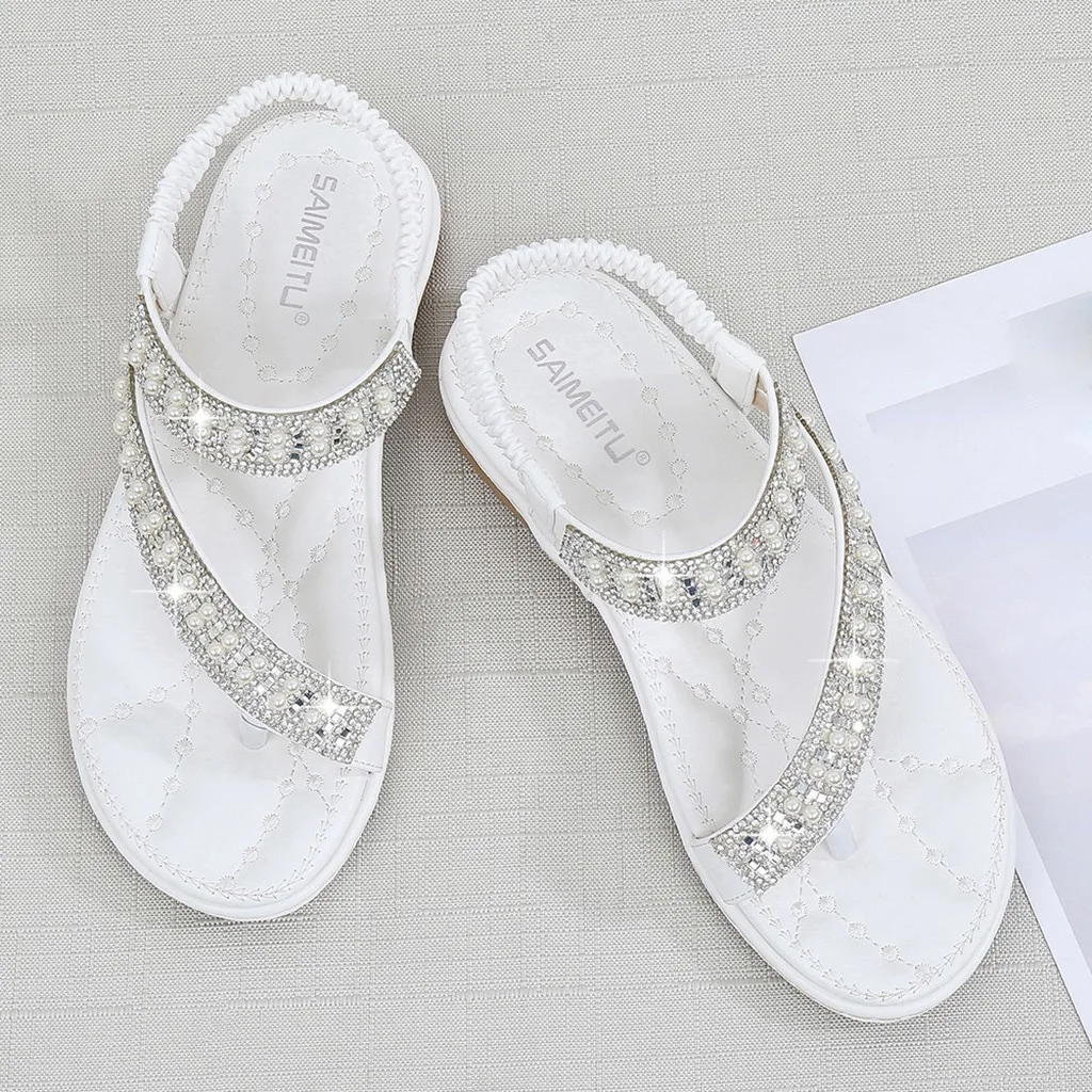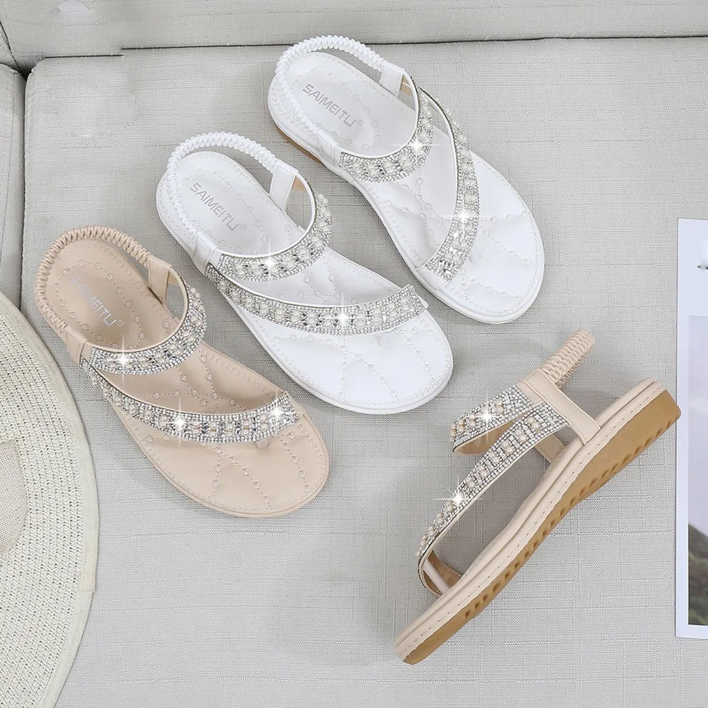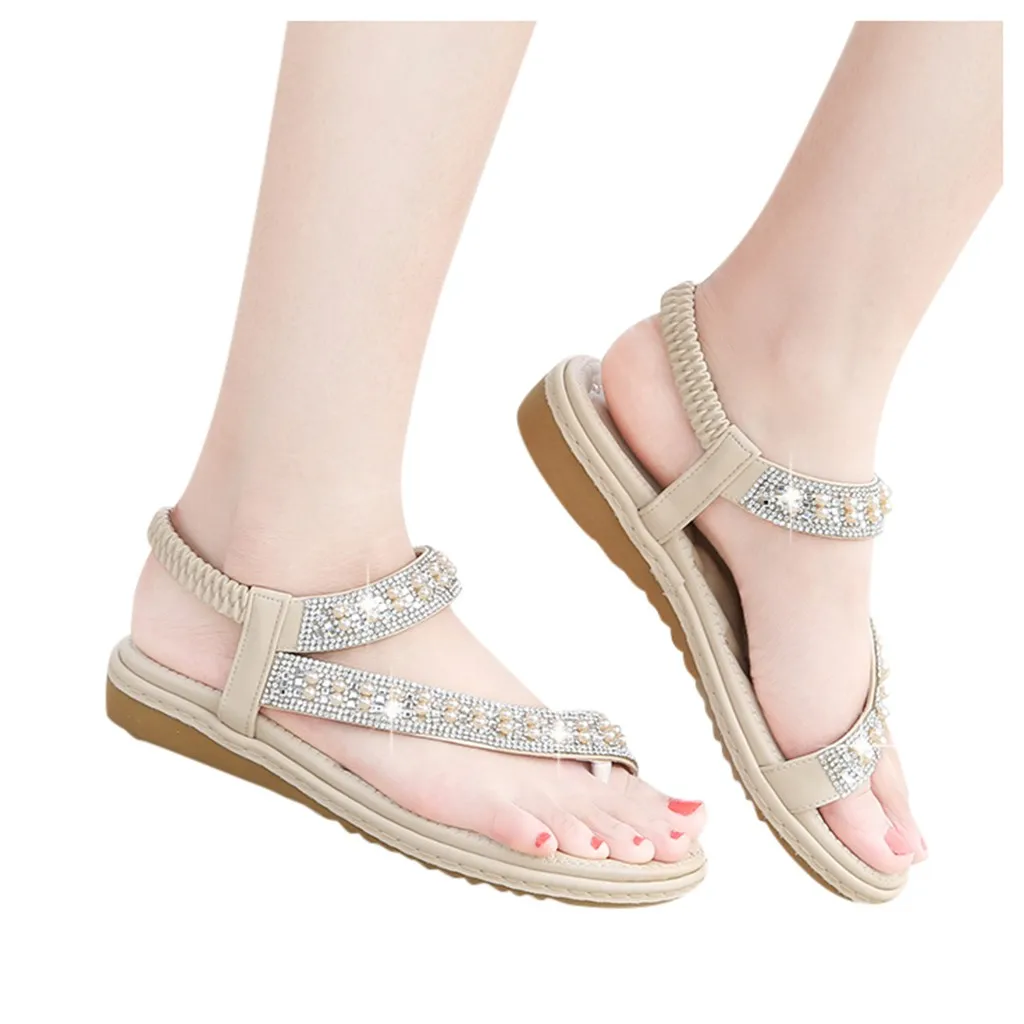 Jaycosin классические женские летние босоножки для отдыха; Сандалии на танкетке; Стразы Вьетнамки смешанных цветов; Обувь для отдыха женская пляжная обувь