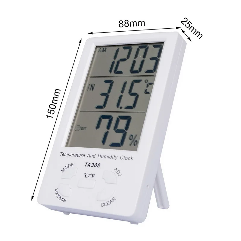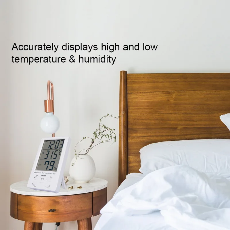 * Два варианта установки: цифровой гигрометр является портативным и имеет подставку для настольного использования или подвесное отверстие для подвешивания на стене