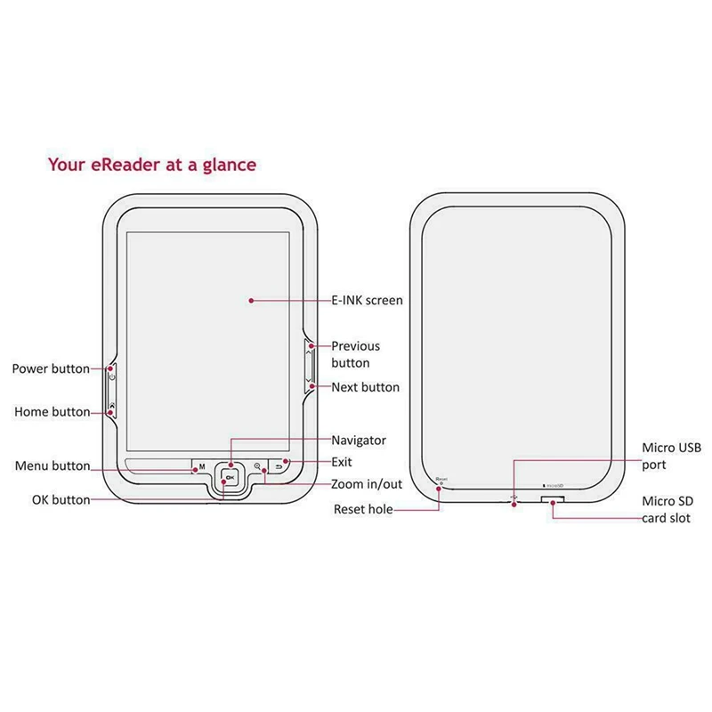 Размер экрана 6-дюймовый E-ink чернильный экран