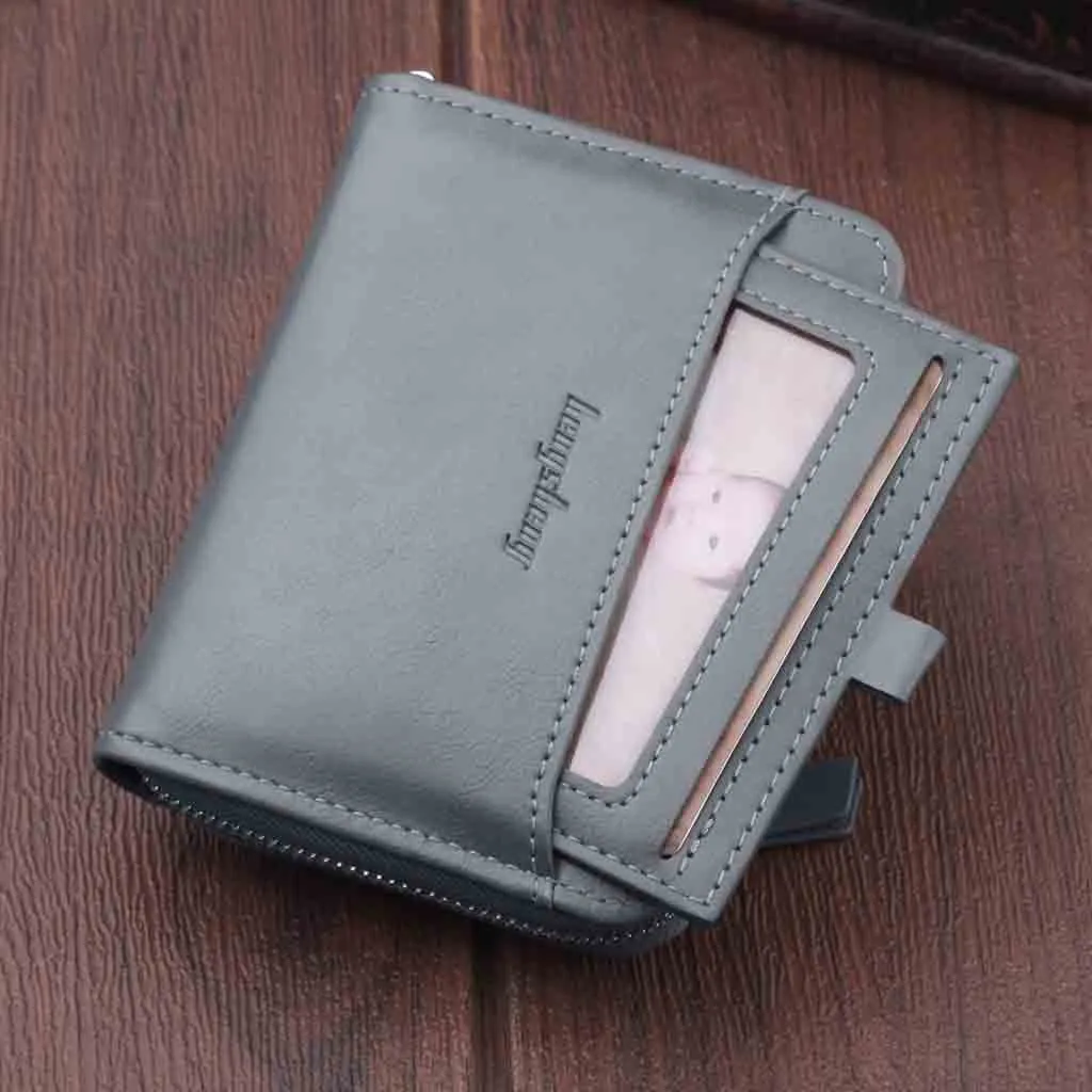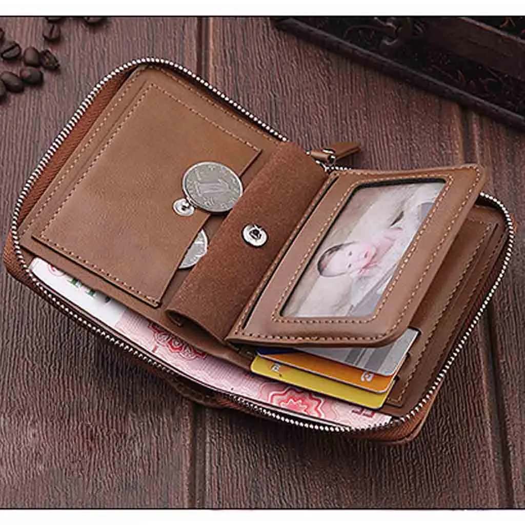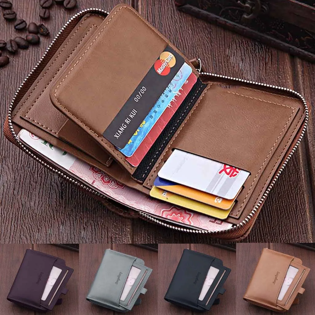 Мужской короткий кошелек на молнии в стиле ретро, маленький кошелек, большая вместительность, многофункциональная Толстая сумка