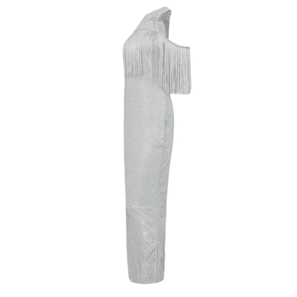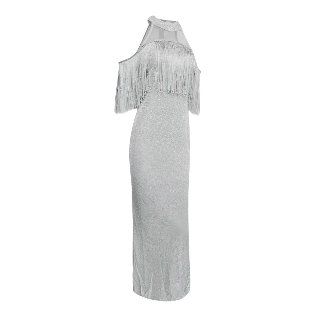 Женское вечернее платье с кисточками, блестящее лоскутное платье с вырезами и разрезом на шее