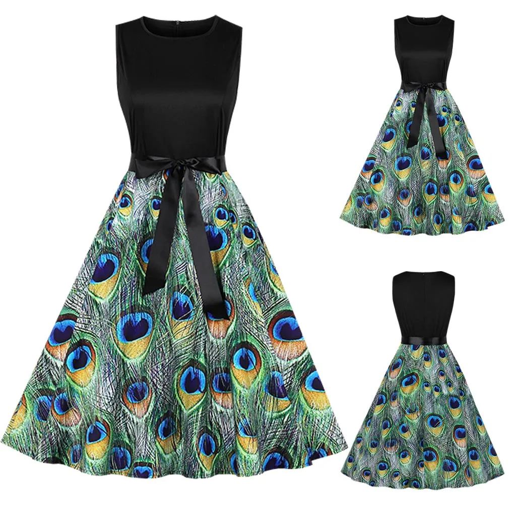 Женское винтажное платье с коротким рукавом и v-образным вырезом, вечернее платье с принтом для выпускного вечера