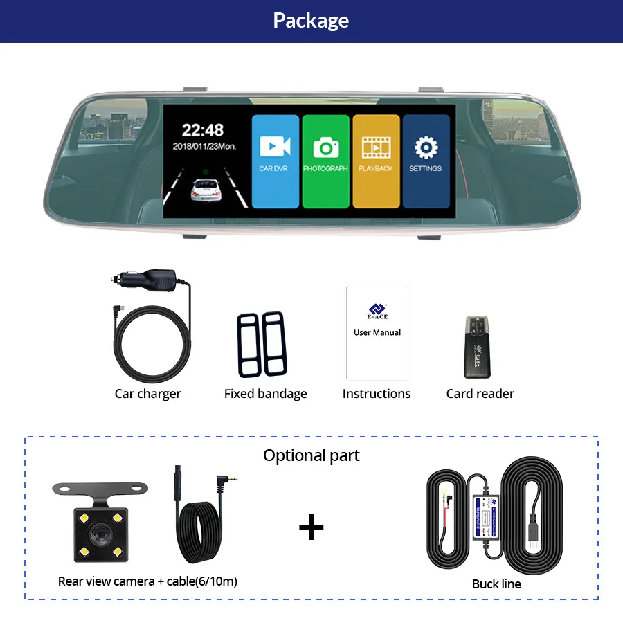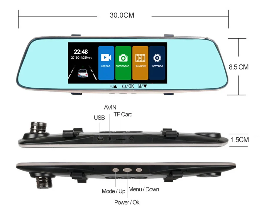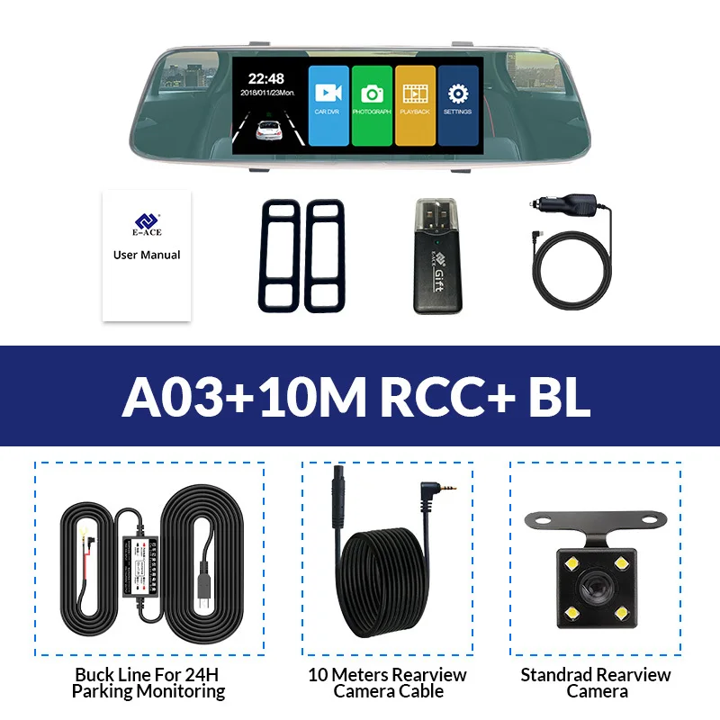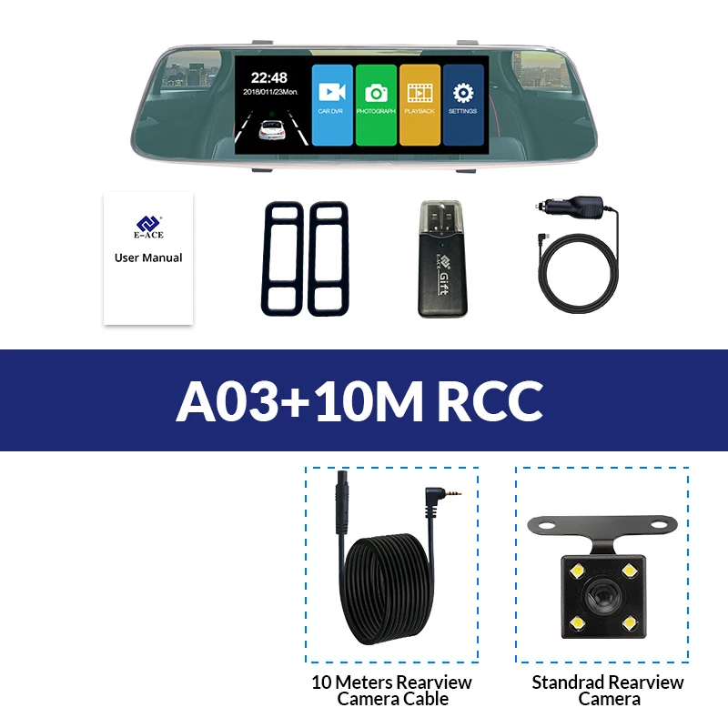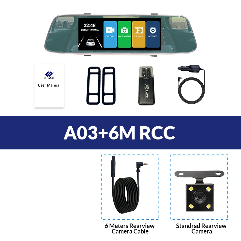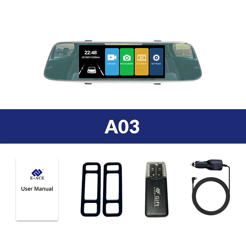 A03 поддерживает два объектива камеры, объектив фронтальной камеры составляет около 170 Drgree широкоугольный, а объектив задней камеры-около 140 градусов. Поддержка изображения на дисплее, два объектива камеры записываются одновременно, все видео сохраняют в TF-карте. При движении задним ходом видеорегистратор автоматически перевернет изображение назад.