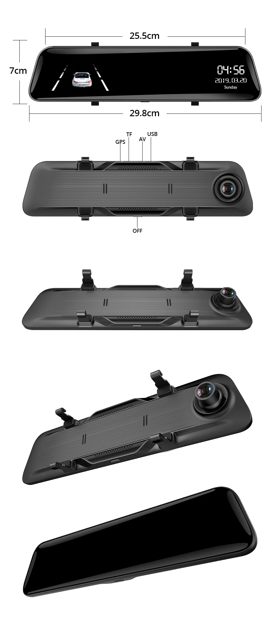 1:1 дизайн разделенного экрана для переключения записи спереди и заднего вида, большой экран и четко и ersily для проверки заднего вида. Вы можете переключаться, проводя пальцем влево или вправо. Он содержит 3 вида: вид спереди, вид сзади, вид спереди и сзади.