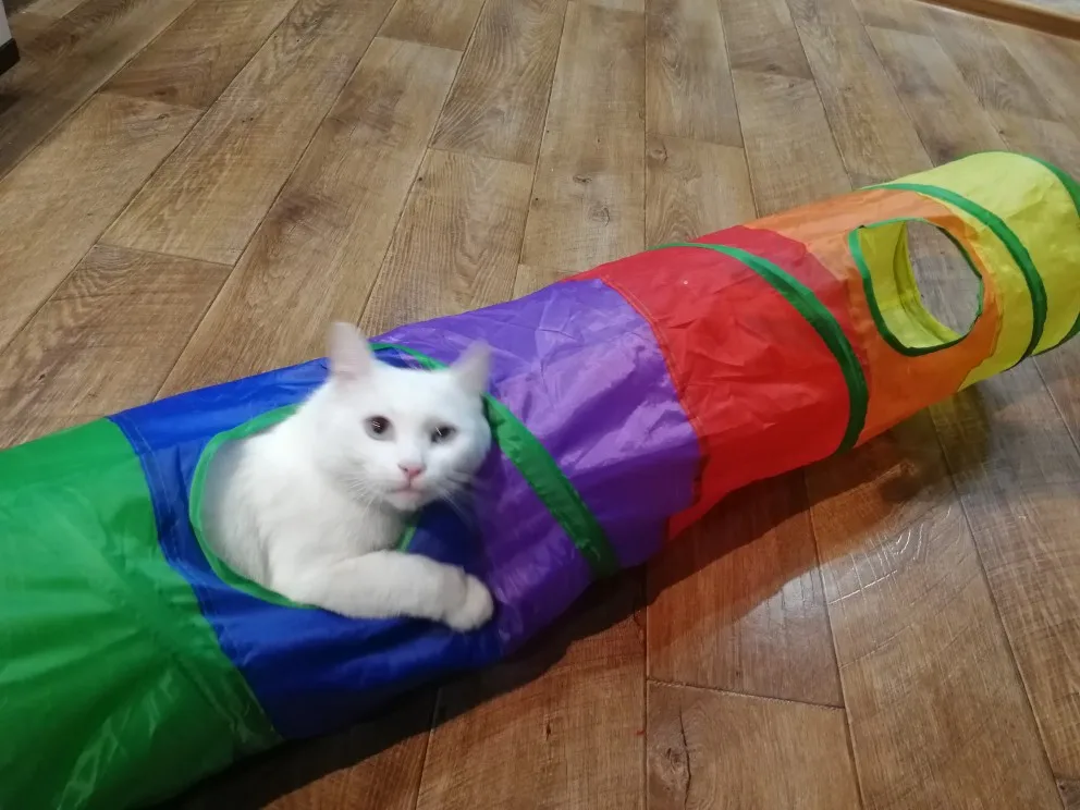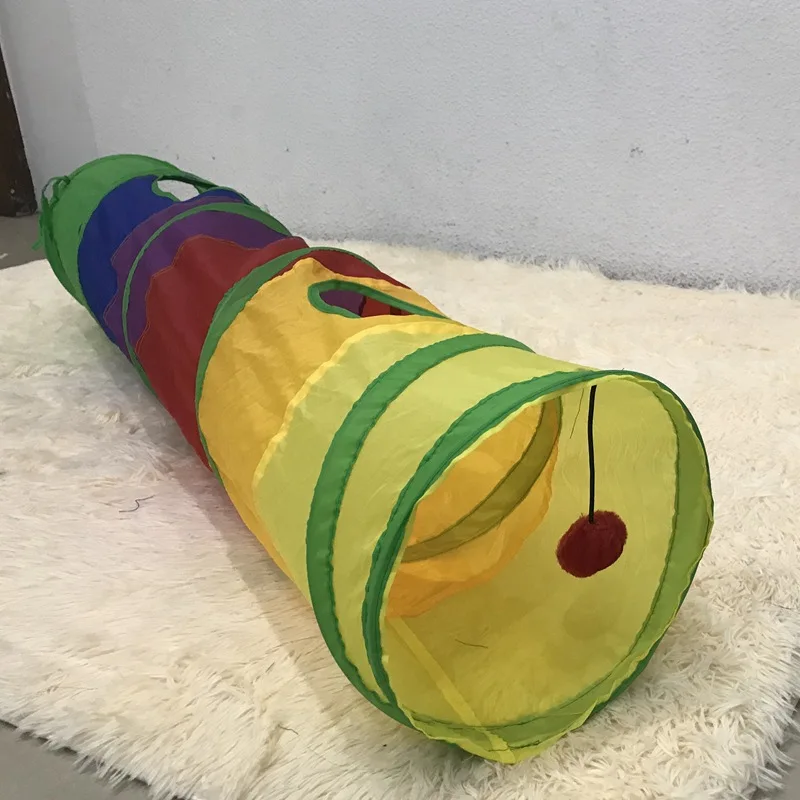 1. Тип: Экологическая образовательная игрушка для домашних животных-складной канал для кошек, рулон дракона, радуга, туннель для кошек 2. Материал: полиэстер 3. Размер: около 120*25 см/47,2*9,84 дюйма 4. Вес: около 300 г
