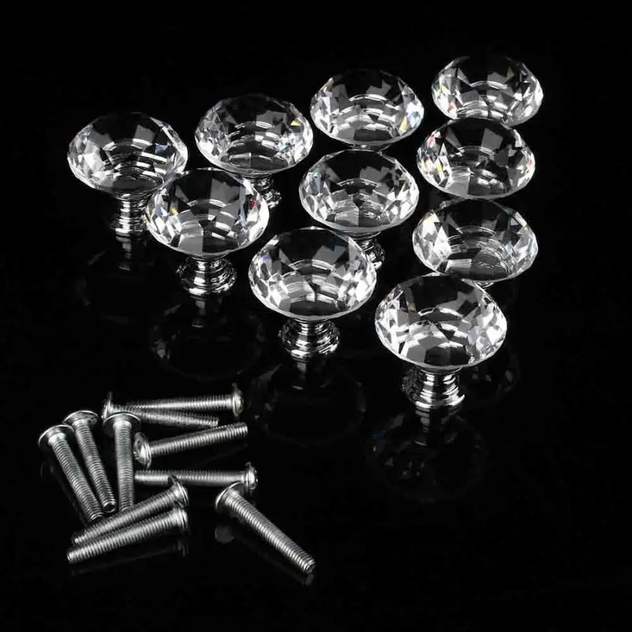 10 шт Кристалл Стекло круглые ручки для шкафа; На Ящики Шкаф ручки набор
