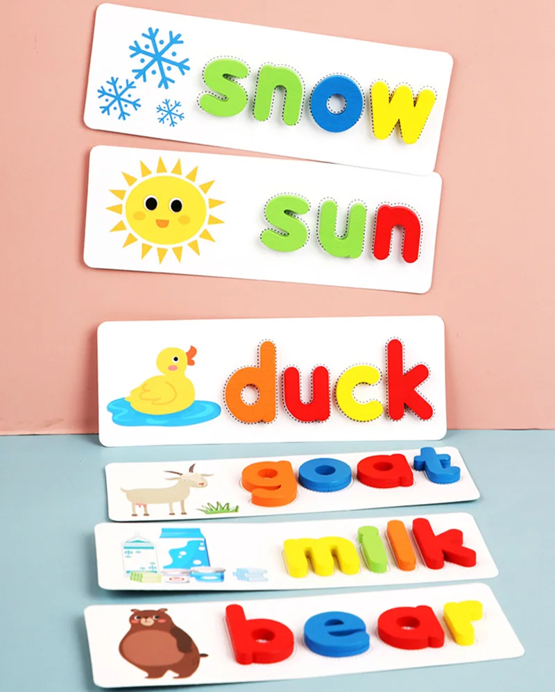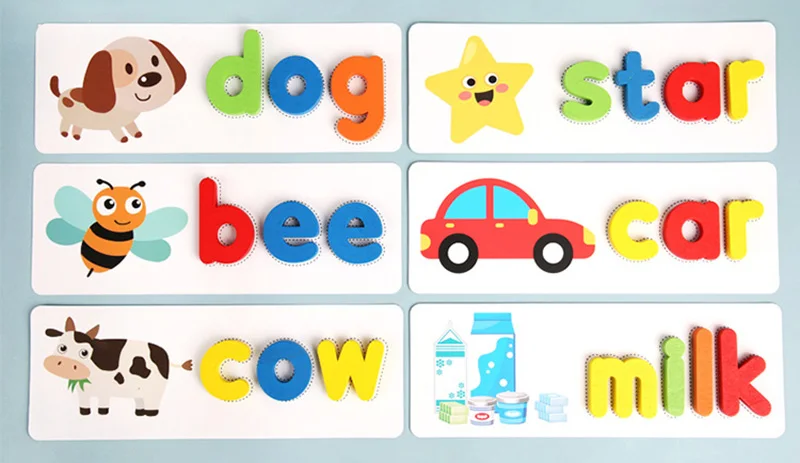 Монтессори развивающие игрушки строительные блоки деревянные детские слова орфографическая игра Раннее Образование Когнитивные буквы карты детские игрушки