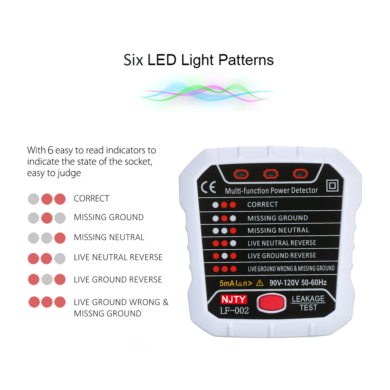 Тестер электрических розеток-Расширенный тестер гнезд для быстрого определения правильности или неправильности соединения проводов гнезда.