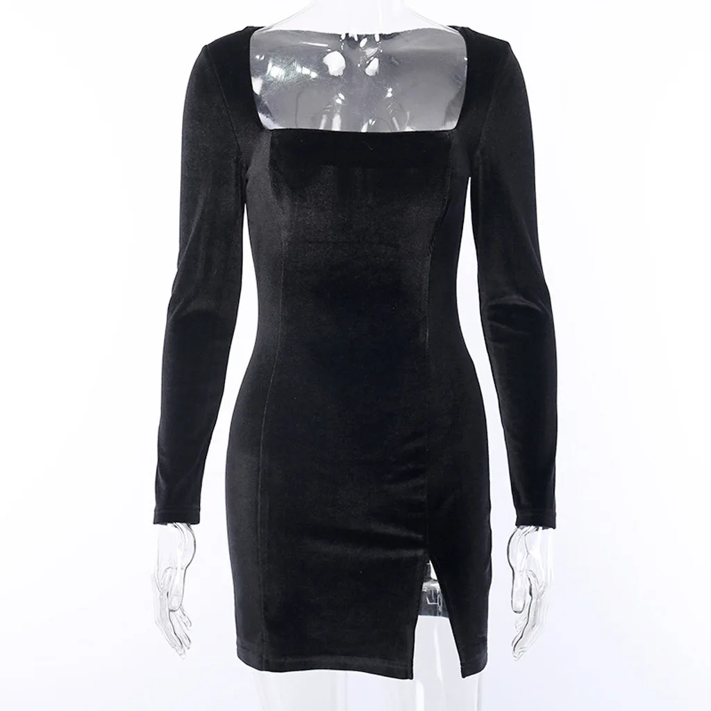 Женское модное платье до колена с квадратным воротником и длинным рукавом