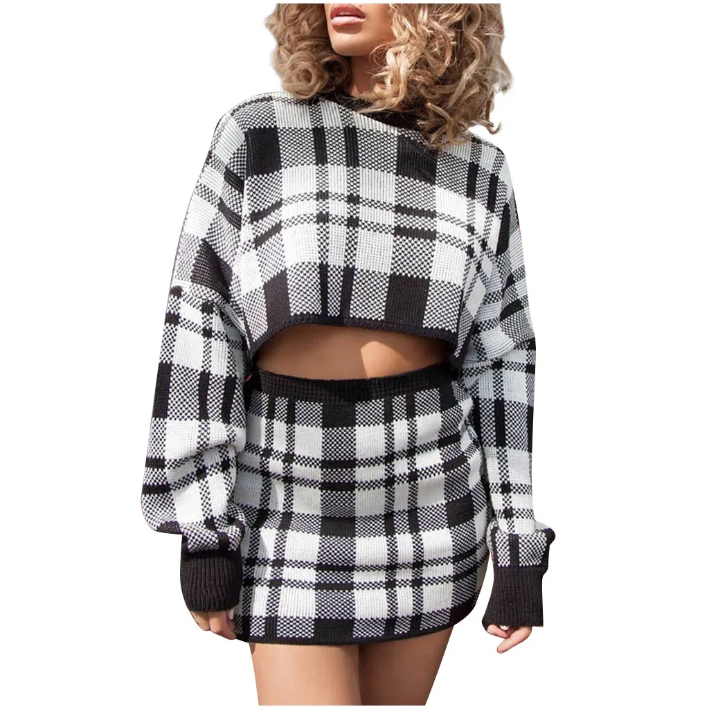 1. Особенности: Повседневное платье-свитер, трикотажное платье в клетку с длинными рукавамиС высоким, плотно облегающим шею воротникомСвитер, повседневные топы, повседневная одежда, стильный и модный дизайн, Осеннее Повседневное платье.