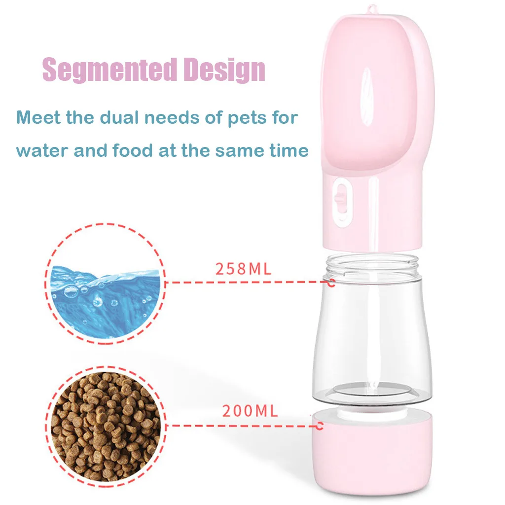 【2 Слои-Вода & Еда design】дизайн многофункциональные бутылка для воды для собак поставляется с двумя деталями, может держать 8,7 oz воды и 6,8 oz Еда. Собачий контейнер для еды с солнцезащитным дизайном может держать еду свежей. Идеально подходит для потребности вашего питомца в воде и еде с чашей. 【 100% гарантия герметичности 】герметичная силиконовая прокладка внутри бутылки и блокировка ключа помогает гарантировать отсутствие утечки воды. Не беспокойтесь о том, чтобы промокнуть и не терять воду, не беспокойтесь о том, чтобы ваш дорожный пакет был влажным. 【 Ручная работа 】одна рука нажимайте водную клавишу до середины (низкая скорость потока) или дна (высокая скорость потока), чтобы заполнить воду, нажмите сверху, чтобы остановить. Воду, которую нельзя пить, можно превратить обратно в чашку. Очень легко использовать для кормления вашего питомца 【Портативный и простой в стирке 】 компактный дизайн с петлей, висящими на бутылках для собак, лучше всего подходит для вашего щенка или кошки во время ходьбы, походов, путешествий или игр. Вы можете положить бутылку в рюкзак или повесить на руку с помощью веревки. Эти две части отстегиваются и легко моются. Отличная идея для прогулок на открытом воздухе с вашим питомцем
