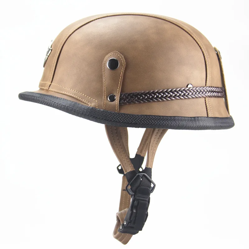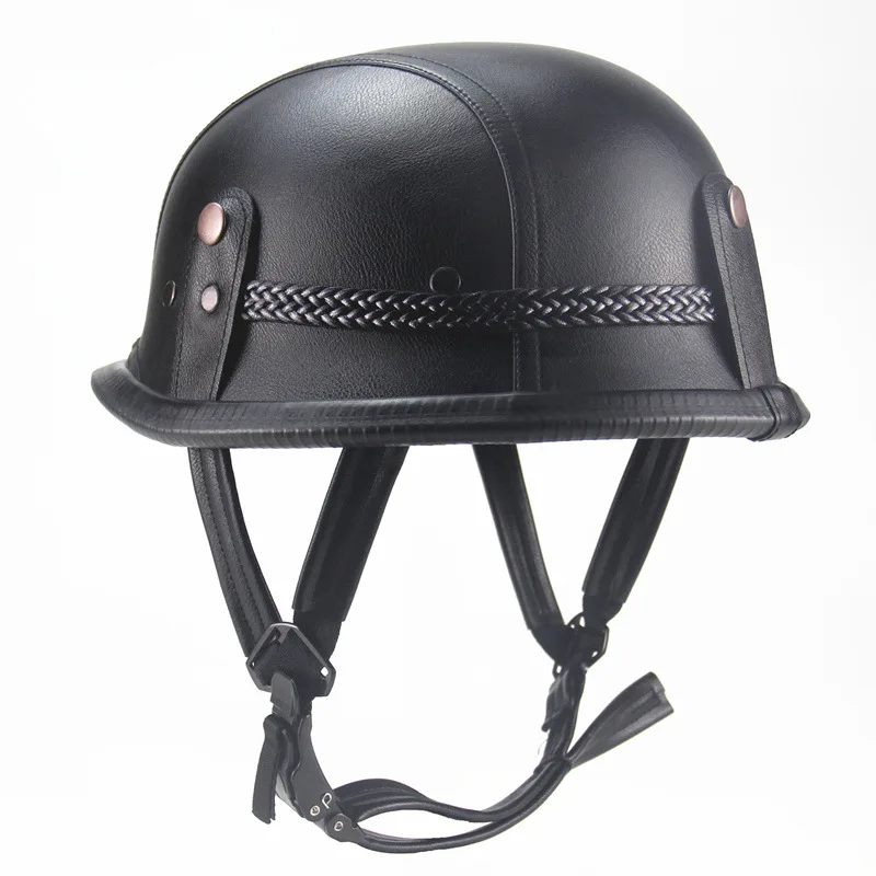 Мотоциклетный шлем Ретро немецкий стиль Второй мировой войны открытый лицевой половина кожаный шлем мото винтажный мотоциклетный камуфляж Полиуретановый буферный слой высокой плотности Мягкая и удобная подкладка Система быстрого крепления обеспечивает идеальную защиту Идеально подходит для мотоциклов, крейсеров, туров, велосипедов и скутеров. Он очень сильный, не будет легко сломать, он может защитить вашу голову и путешествия. Соответствует и превышает стандарт DOT