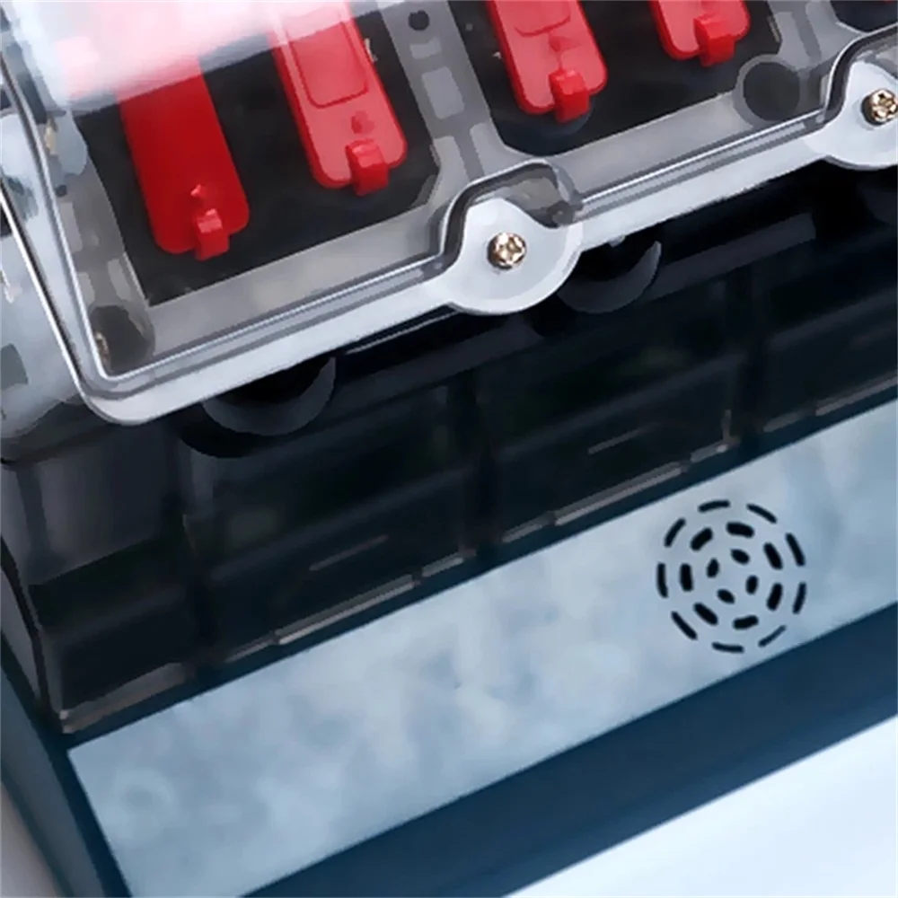 -Весело играть: в общей сложности 270 шт. аксессуаров (включая винты), это двигатель V8, который должен быть собран самостоятельно. Это почти то же самое, что и настоящий двигатель V8, что дает вам реальный опыт сборки. При нажатии выключателя двигатель вращает приводной вал поршневого кулачка цилиндра; Восемь поршневых цилиндров делают ход, чтобы управлять вентилятором для вращения, И зубчатый ремень вращает подшипник впускного клапана, так что впускной клапан открывается и закрывается. Внутренний светодиодный светильник будет освещаться во время работы, и аналоговый звук двигателя будет излучается от динамика, который будет выключен через около 30 секунд.