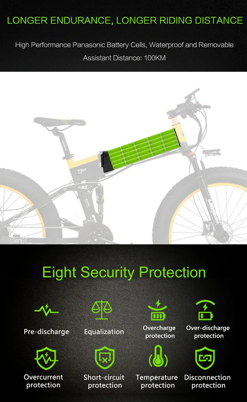 48V 13AH, Panasonic-18650 литиевая батарея Съемная зарядка. Время работы: 50 км