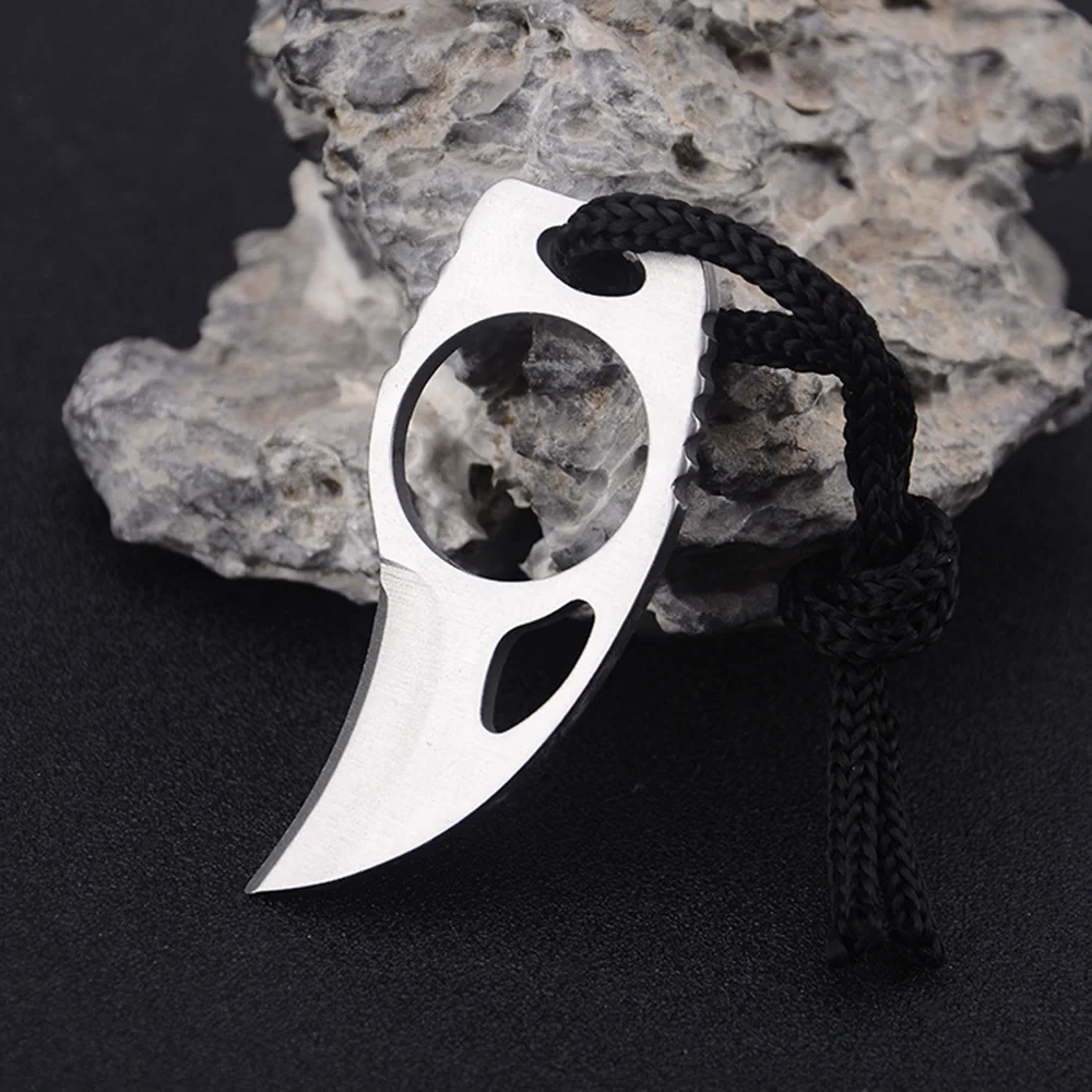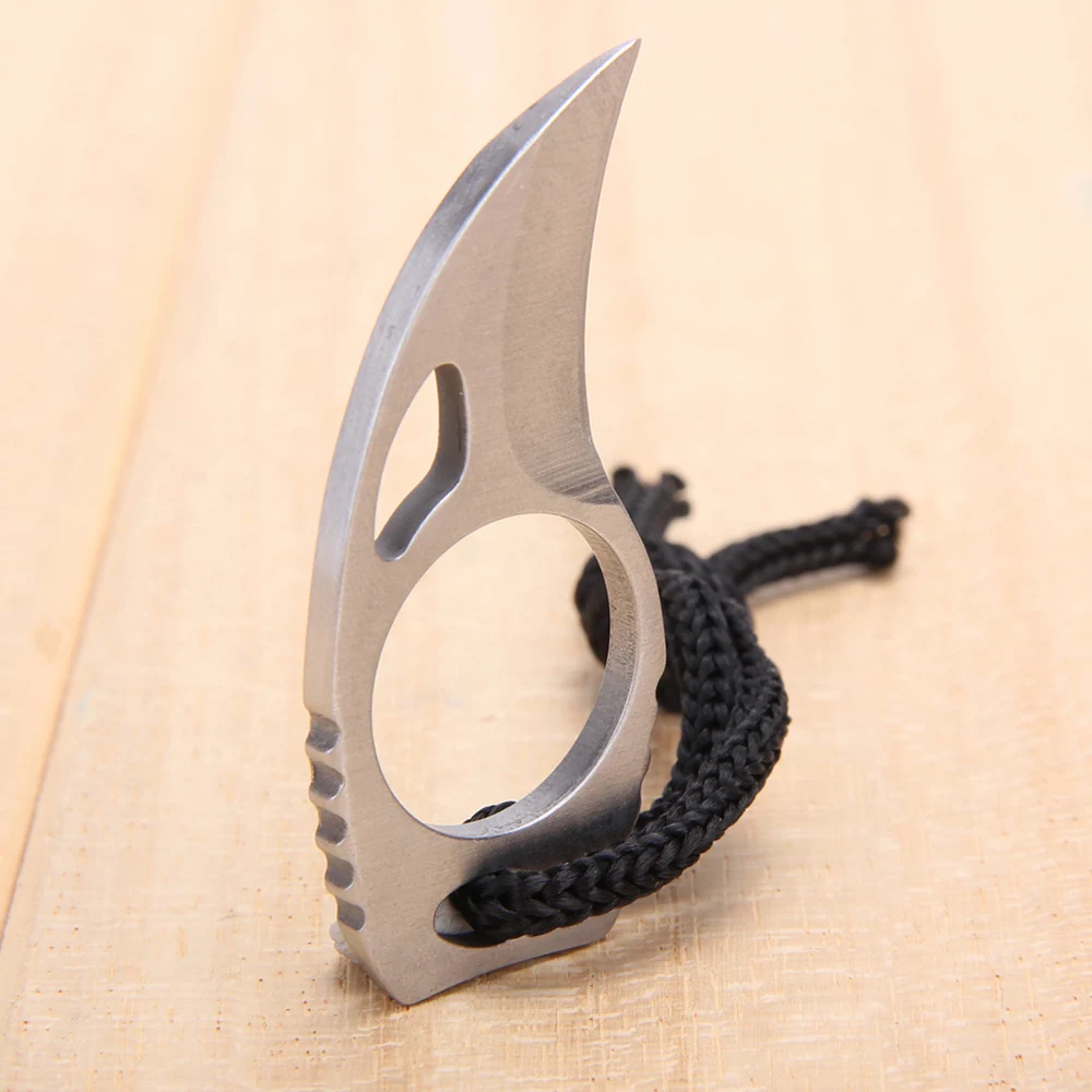 Это высококачественный коготь на палец нож с кожаной оболочкой. Небольшой размер и легкий вес, удобно хранить и носить с собой. Есть кольцо, в которое вы можете положить палец и плотно держать его, никогда не причиняйте вреда во время использования. Идеальный инструмент для выживания для занятий спортом на открытом воздухе, таких как кемпинг, парусный спорт, дайвинг, рыбалка и охота.