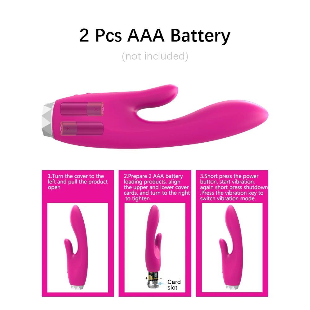 1. Цвет: фиолетовый/розовый 2. Размер изделия: 184*56*42 мм 3. Материал: силикон + АБС 4. Источник питания: 2 шт. AAA батареи 5. Режим вибрации: 8 режимов двухмоторная вибрация