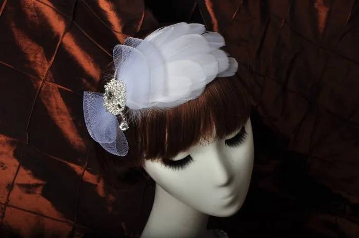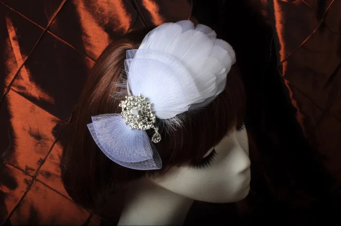 Стразы ручной работы, заколка для волос с перьями для женщин, белая заколка для волос с перьями для невесты, Свадебная вечеринка, женские аксессуары для волос