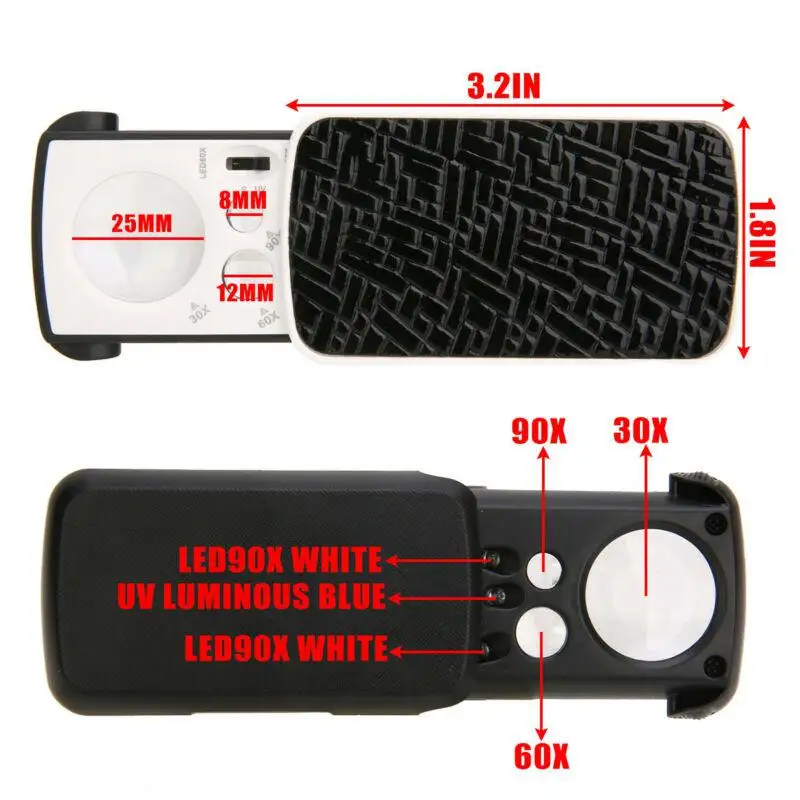 Лупа высокой мощности 0,5 дюйма 0,3 дюйма: 90X zoom