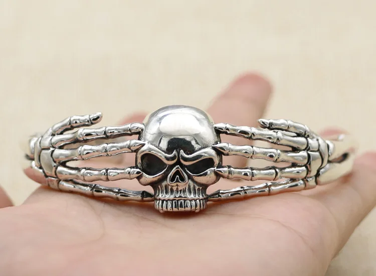 100% Стерлинговое Серебро S925, мужской браслет, индивидуальная мода, Ретро хип-хоп, панк украшения, форма черепа, подарок любви