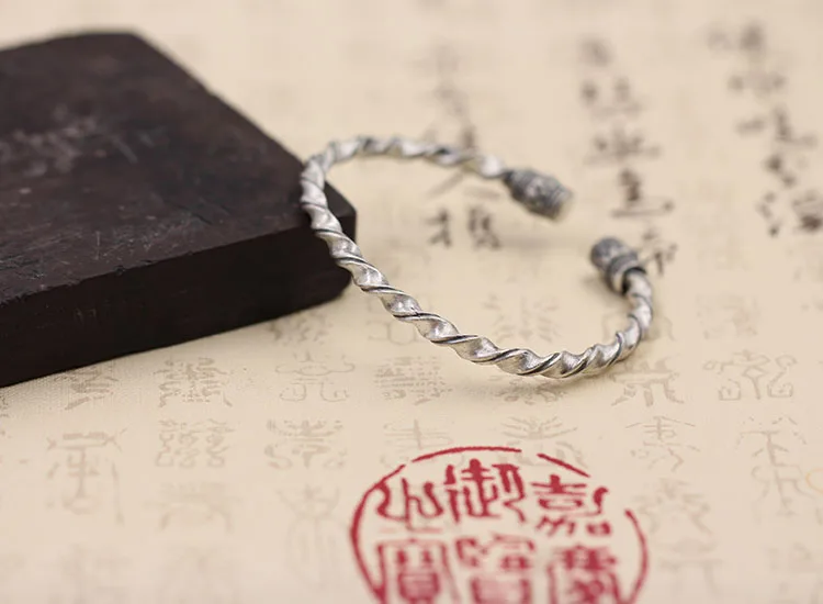 100% Стерлинговое Серебро s925, мужской и женский браслет, индивидуальная Мода, классические ретро ювелирные изделия, витой Лотос, простой стиль