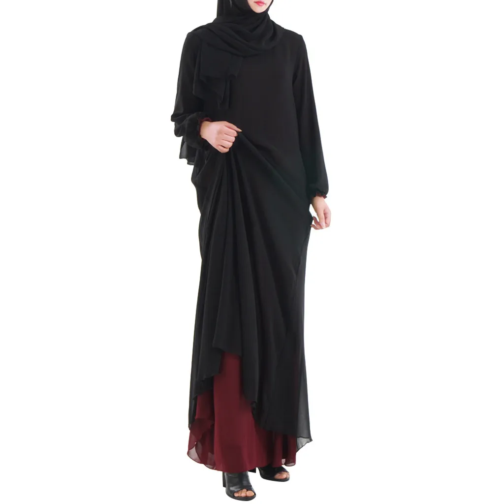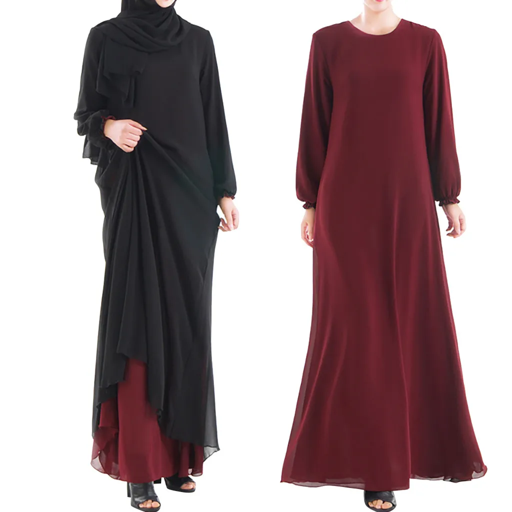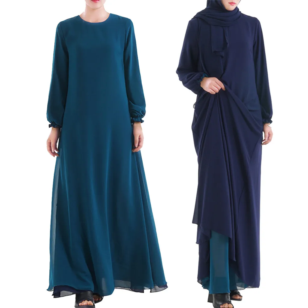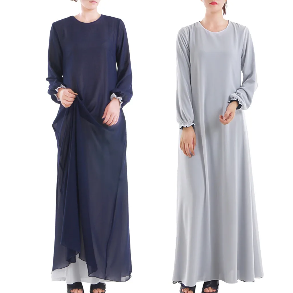 Длинная мусульманская женская одежда с обеих сторон Дубай абайя макси платья Исламская одежда