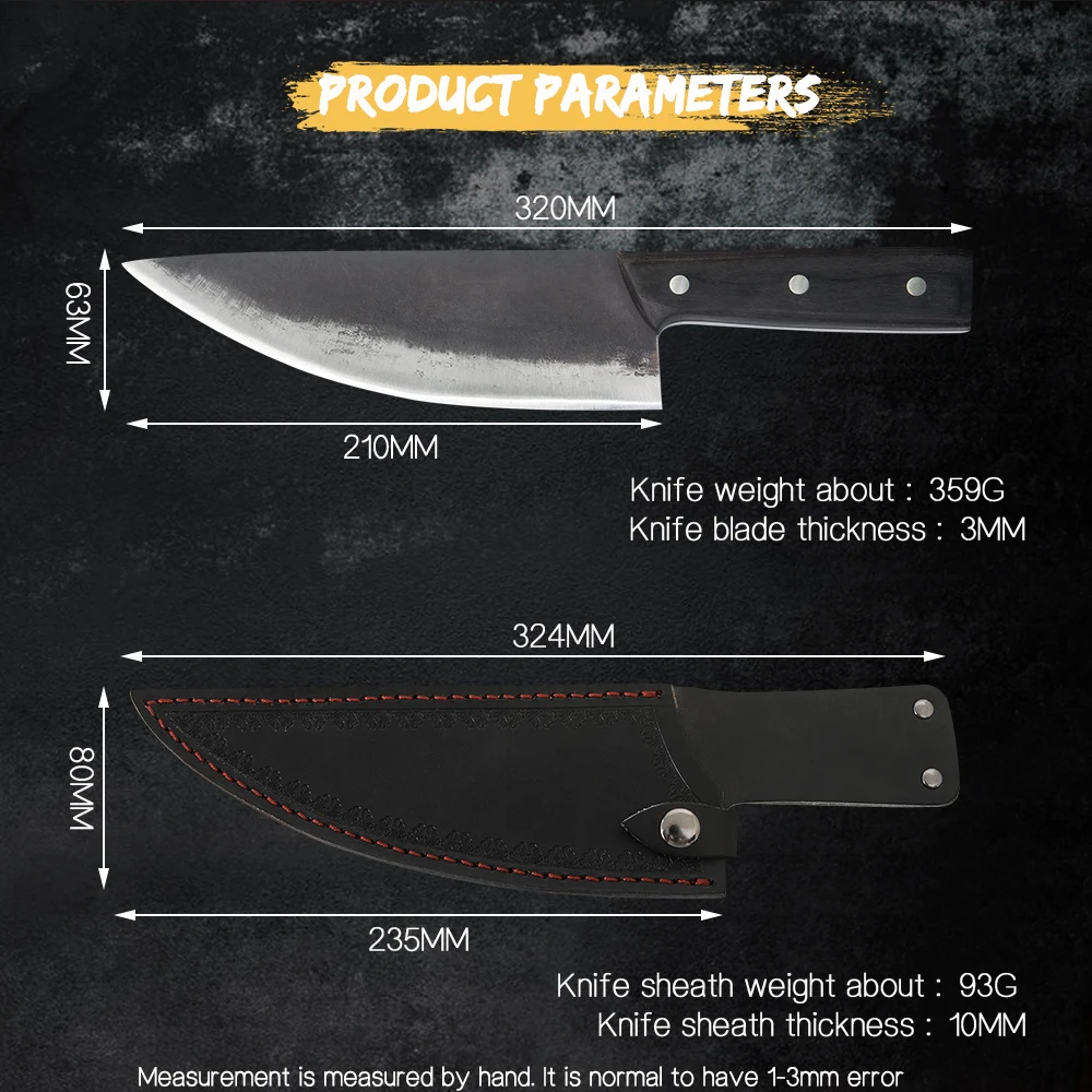 Посылка включает в себя: Как показано на картинке Стиль ручки: полная ручка Tang Материал лезвия: кованая Высокоуглеродистая сталь ручной работы Материал ручки: полностью интегрированный Стальной хвостовик + дерево + заклепки Особенности: Подходит для измельчения и нарезки: нож шеф-повара Sowoll с отличной жесткостью, бритвенным шарфом, подходит для мяса, рыбы, овощей. Ручной Кованый нож шеф-повара: китайский кухонный нож изготовлен из марганцевой стали вручную, ручка и лезвие интегрированы без пайки, который является прочным и прочным для устранения сломанной ручки. Длительный срок службы: ручной работы выкованные разделочные ножи заточены вручную опытными работниками, по сравнению с другими кухонными ножами, изготовленными механическими способами, срок службы таких ножей шеф-повара намного дольше.