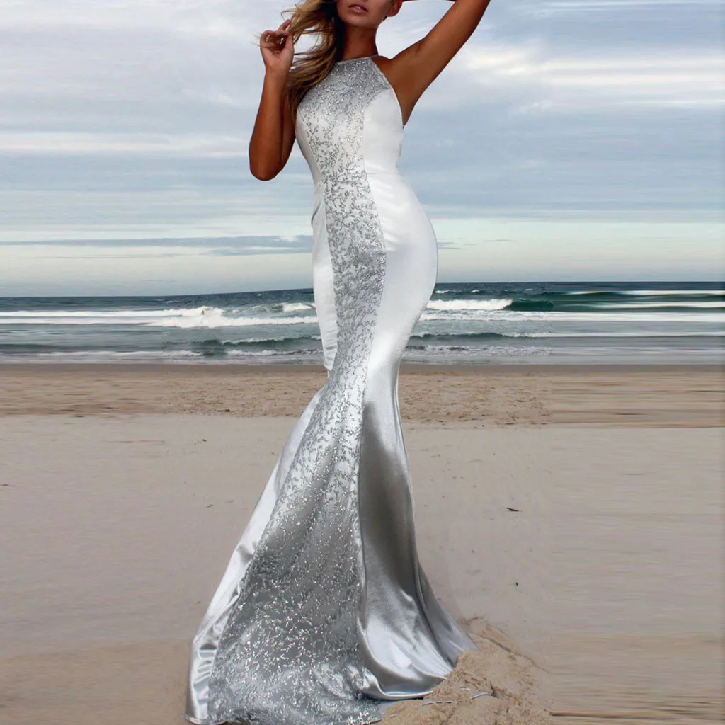 Женское вечернее платье в стиле бохо с кружевными оборками и круглым вырезом без рукавов