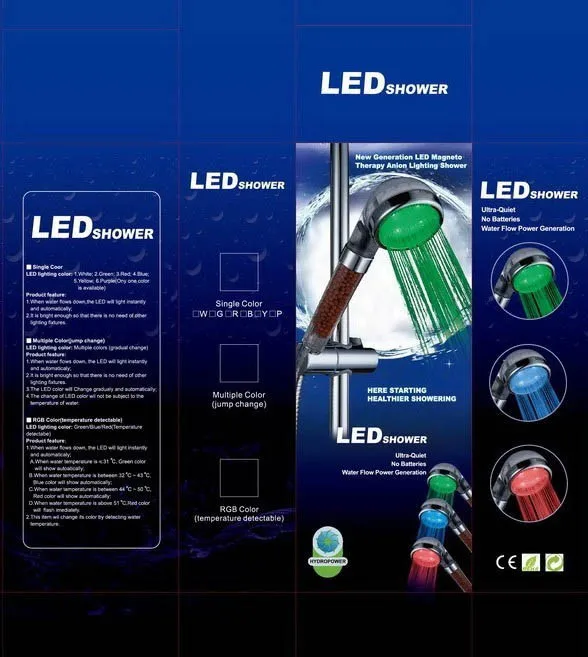 Этот продукт с помощью визуального наблюдения за цветом воды меняет более интуитивное понимание температуры воды, нет необходимости регулировать водяной клапан. Даже если отключение электроэнергии, то же самое может быть освещение, очень энергосбережение и охрана окружающей среды.