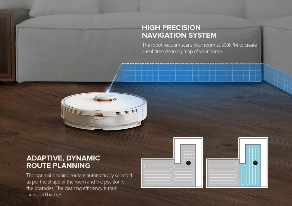 Высокоточный лазерный навигационная система сканирует ваши номер при температуре не выше 300 об/мин, создание площадная времени карту вашего дома. Чистки более точный и более эффективный