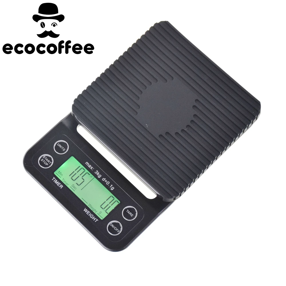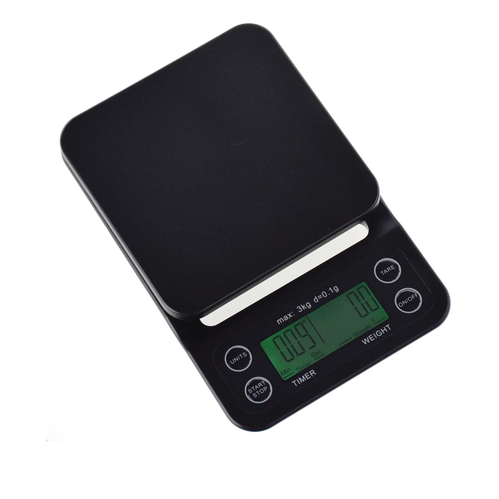 Кг/3 кг/0,1g Портативный высокой точности ЖК-дисплей электронные цифровые Кухня весы капельного Кофе весы с таймером для взвешивания измерительный инструмент