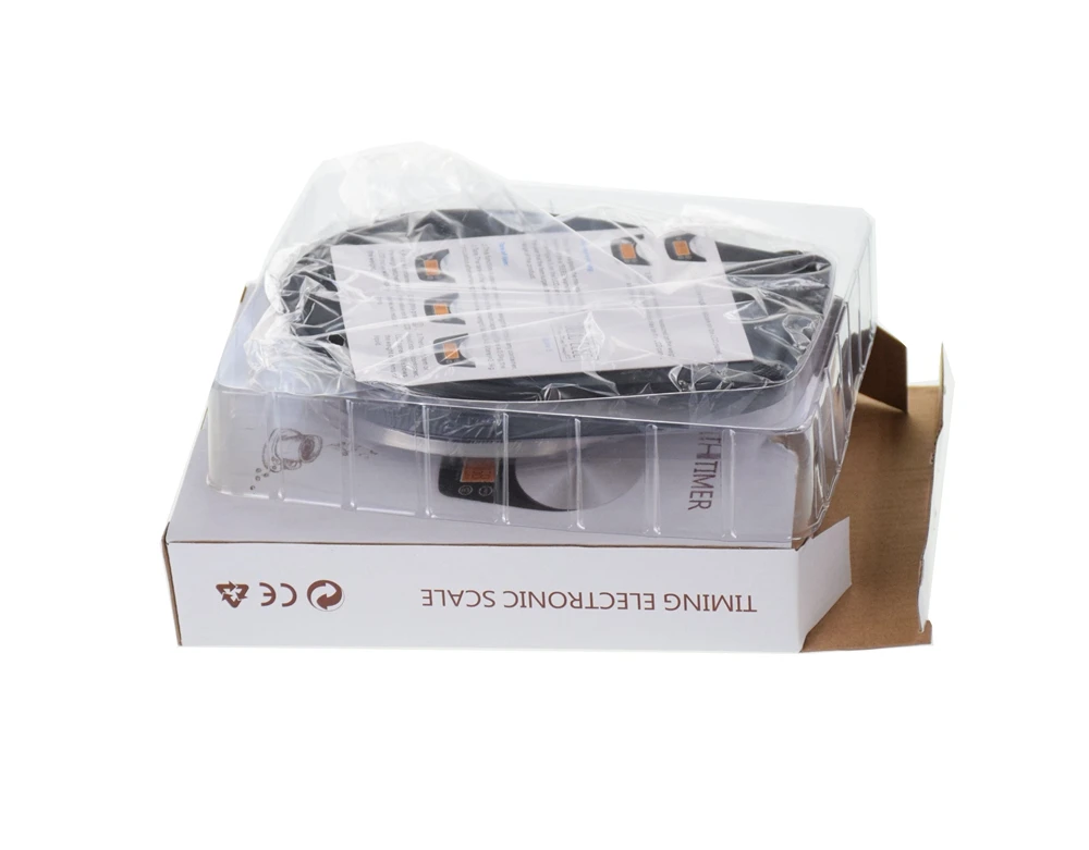 Самое длительное время: 99 минут 59 секунд (левая кнопка), подходит для взвешивания кофе ручной работы, Максимальная нагрузка 3 кг (правая кнопка)