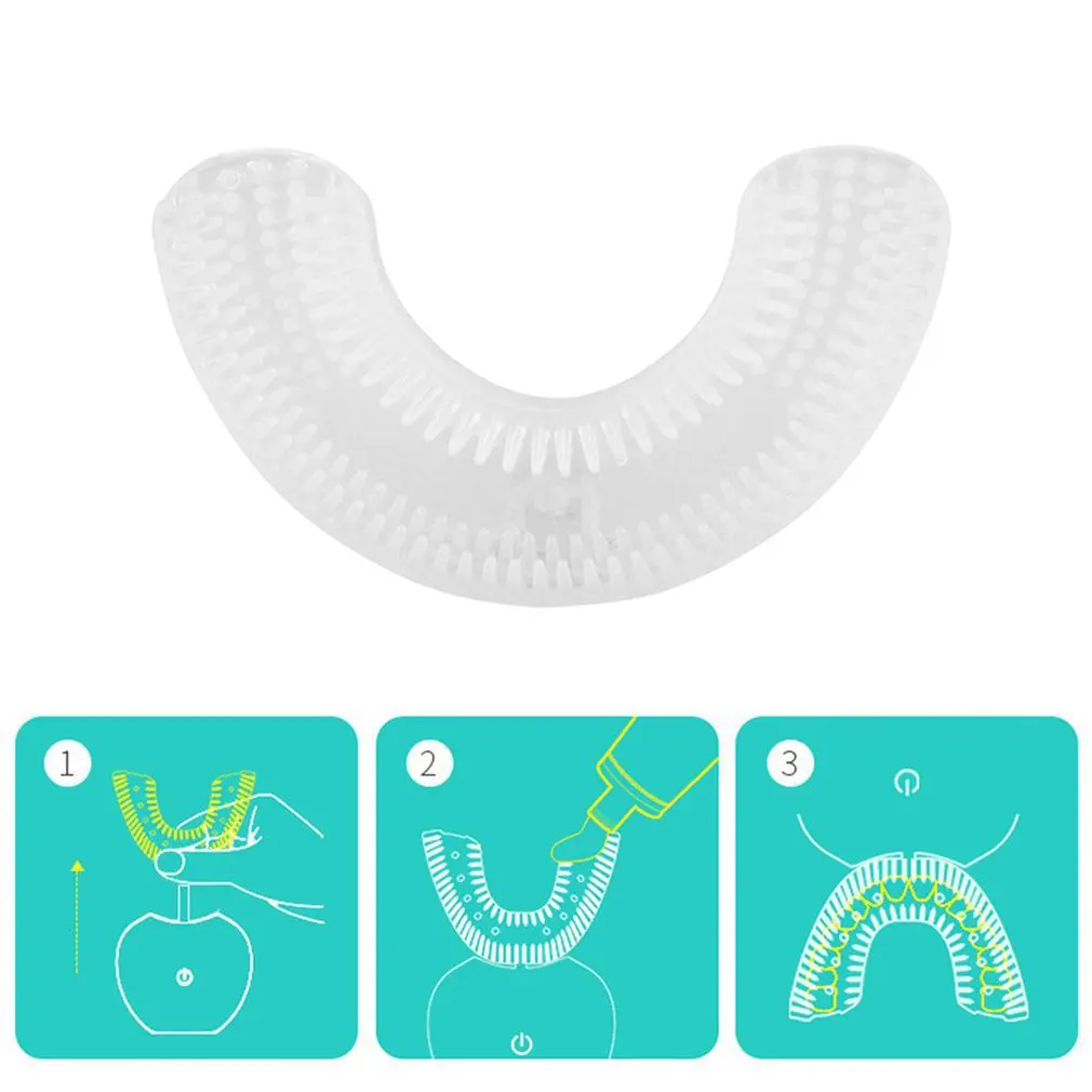 Водонепроницаемый дизайн u-образный детский силиконовый 360 градусов звуковая электрическая зубная щетка
