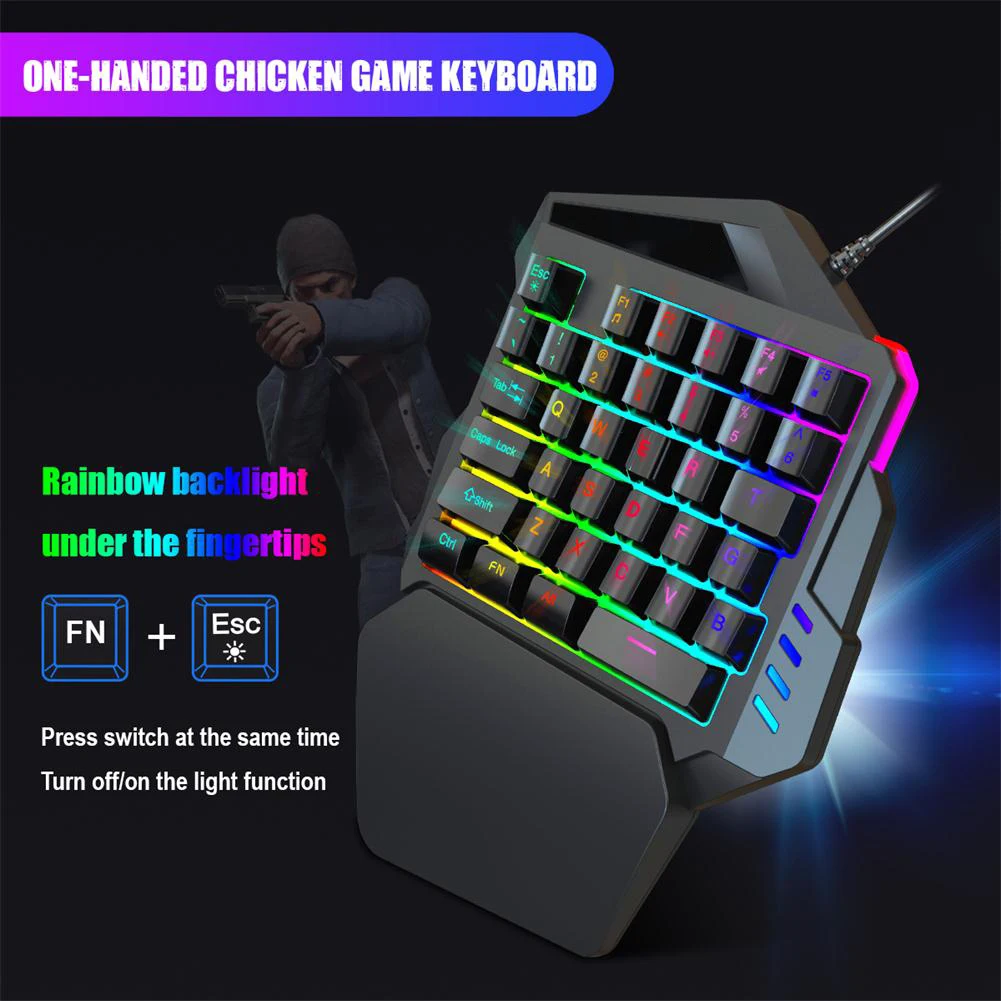Игровая клавиатура одной рукой; Мини-портативная игровая клавиатура; Описание изделия: * 1. Клавиатура одной рукой предназначена для игр. * 2. Быстрый ответ, без задержки. Поможет вам достичь более высоких достижений в игре. * 3. Удобный дизайн подставки для запястья для левшей. Подарит вам больше комфорта в игре. * 4. С 5 мультимедийными клавишами. * 5. Благодаря дышащему свету клавиатура с одной рукой выглядит круто. Характеристики продукта: Название продукта: игровая клавиатура одной рукой Материал: ABS интерфейс продукта: usb2.0 количество кнопок: 35 клавиш Рабочее напряжение: VDD = 3,3-5,5 в рабочий ток: применимая система 100 мА: подходит для win2000, winxp, winme, Vista, Win7, Win8, android, Linux, Apple, И т. Д. Мультимедийная кнопка: Размер продукта: 26*18*4 см комплектация: клавиатура * 1 Примечание: 1. Все изображения имеют профессиональную цветовую кодировку, но из-за разного окружающего освещения и различных настроек устройства отображения могут быть некоторые отклонения между изображениями, которые вы видите, и самим товаром. Пожалуйста, поймите. 2. Данные измеряются вручную, могут быть некоторые отклонения, но это не влияет на использование. * 1. Клавиатура одной рукой предназначена для игр. * 2. Быстрый ответ, без задержки. Поможет вам достичь более высоких достижений в игре. * 3. Удобный дизайн подставки для запястья для левшей. Подарит вам больше комфорта в игре. * 4. С 5 мультимедийными клавишами. * 5. Благодаря дышащему свету клавиатура с одной рукой выглядит круто.