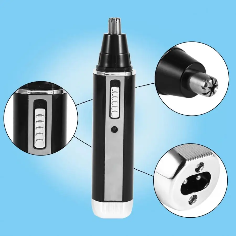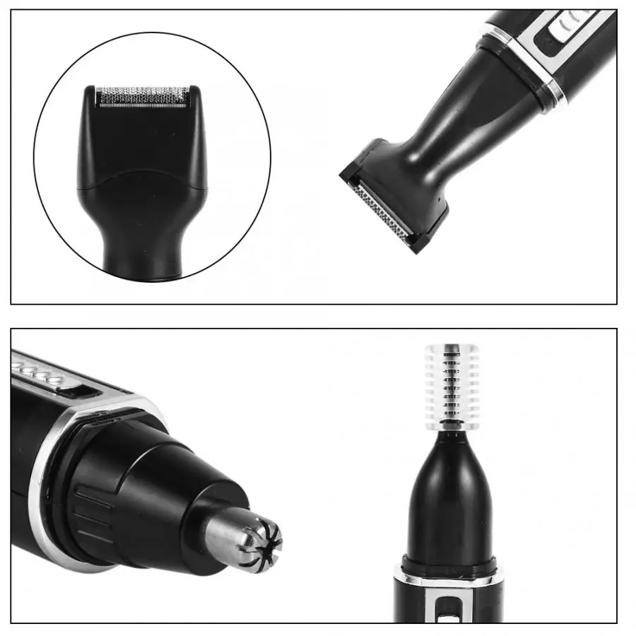1. Триммер для носа имеет 4 различных головки триммера, которые можно использовать для удаления волос вокруг ушей, носа, боковины и даже длинных бровей.