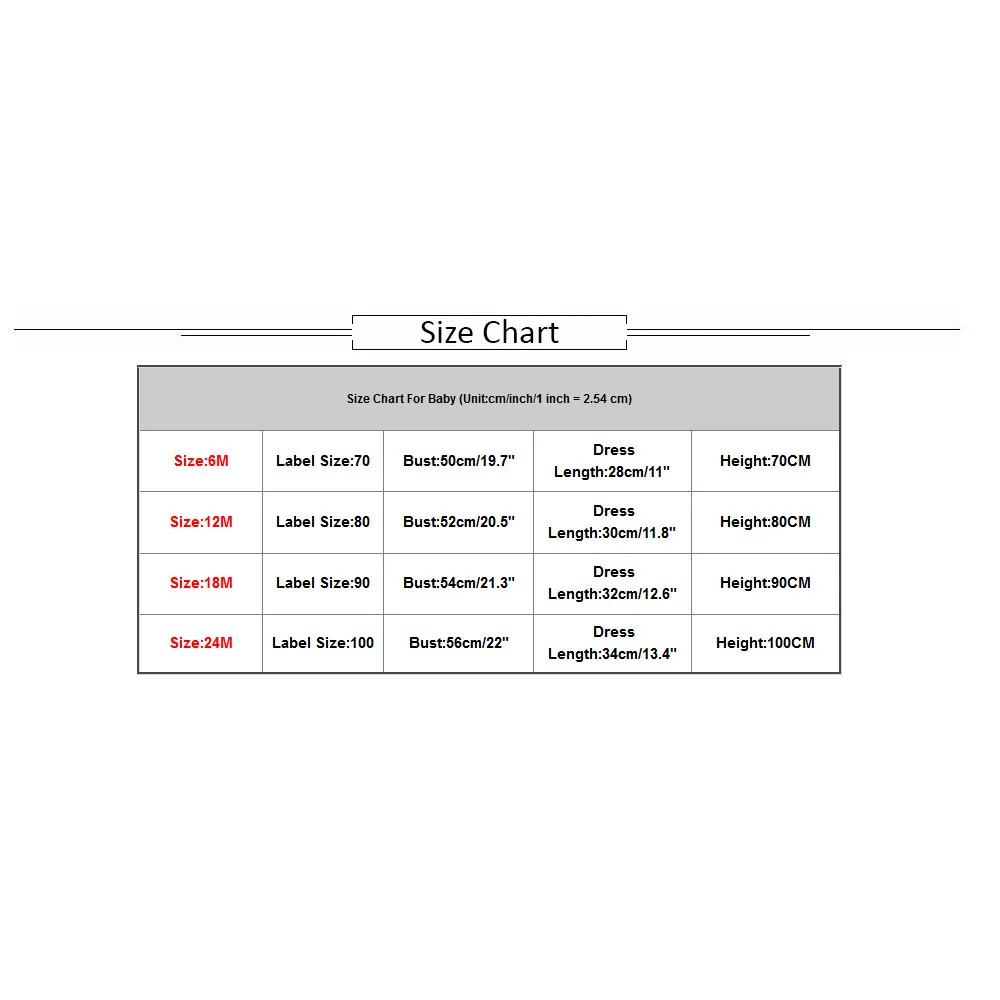 Таблица размеров для малышей (единица измерения: см/дюйм/1 дюйм = 2,54 см) Размер: 6 м Размер этикетки: 70 Бюст: 50 см/19,7" ПлатьеДлина: 28 см/11" Высота: 70См Размер: 12 м Размер этикетки: 80 Бюст: 52 см/20,5 дюйма ПлатьеДлина: 30 см/11,8" Высота: 80См Размер: 18 м Размер этикетки: 90 Бюст: 54 см/21,3" ПлатьеДлина: 32 см/12,6 дюйма Высота: 90См Размер: 24 м Размер этикетки: 100 Бюст: 56 см/22 дюйма ПлатьеДлина: 34 см/13,4" Высота: 100См