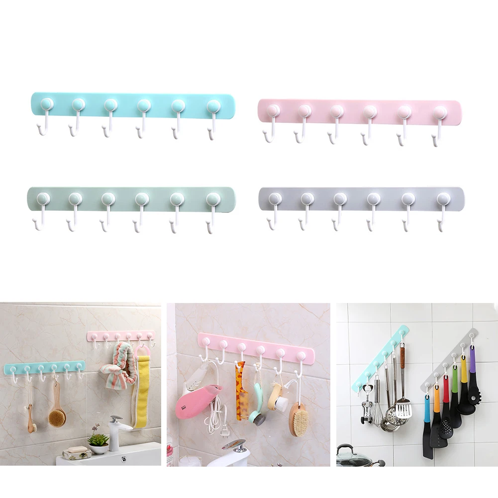 * 1. Материал: полипропилен * 2. Цвет: серый, зеленый, голубой, розовый * 3. Размер (прибл.): 40*9 см * 4. Вес: 100 г * 5. Применимые места: кухня, ванная комната, спальня * 6. Стиль: однорядные 6-крючок Особенности: * 1. Изготовлен из полипропиленового материала, прочный и экологически чистый. * 2. Простота установки, простота в использовании. * 3. Дизайн с 6 крючками, отвечает вашим различным потребностям. * 4. Самоклеющиеся, не легко падают. * 5. Широкое применение: кухня, ванная комната, спальня. Упаковочный лист: держатель 6 крючков * 1 мешок OPP