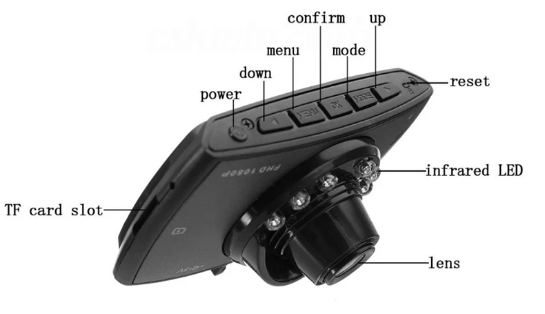 Поддержка карт памяти TF до 32 Гб Низкое освещение, датчик CMOS Широкоугольный объектив 100 градусов Формат видео: AVI .1920x720P 30 кадров в секунду Формат фото: 2560x1920 JPG Китайский (другие языки) Бесшовная функция циклической записи Авто Запуск видео автомобиля, задержка выключения после выключения Запись функция во время зарядки Функция анти-тряски вождения автомобиля Функция AV OUT Функция PC camera