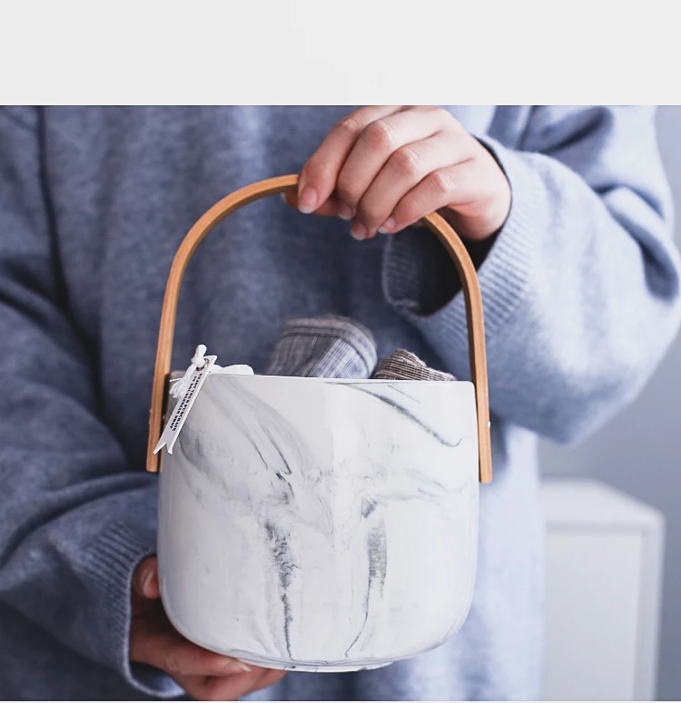 Простой стиль керамический изысканный горшок с деревянной ручкой полотенце цветы Закуски Шоколадные мраморные Декоративные Фарфоровые домашние