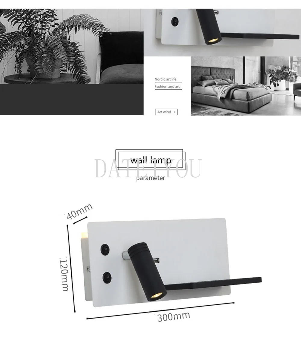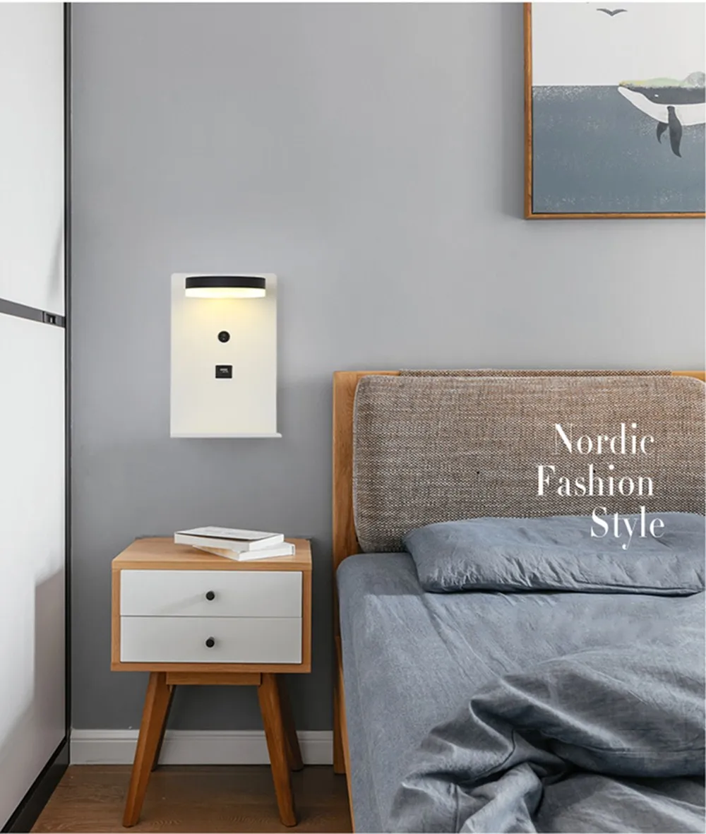 Новый скандинавский Простой настенный светильник новый креативный прикроватный Многофункциональный светодиодный мобильный телефон зарядка USB порт настенный светильник