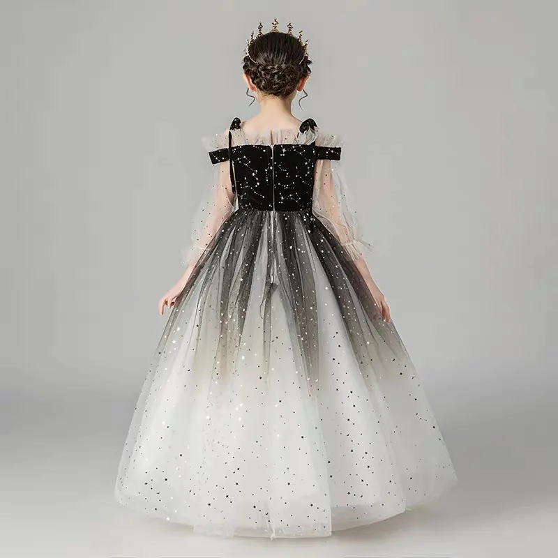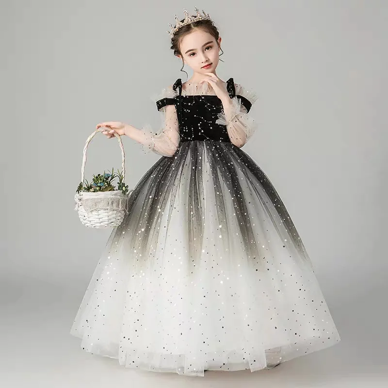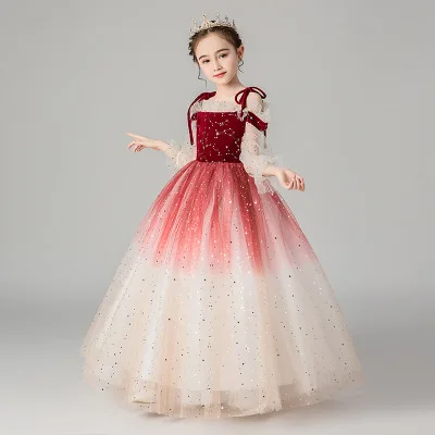 Роскошные вечерние платья принцессы на день рождения для девочек 2020, бальное платье с воротником без Плеч, детское длинное платье с блестками
