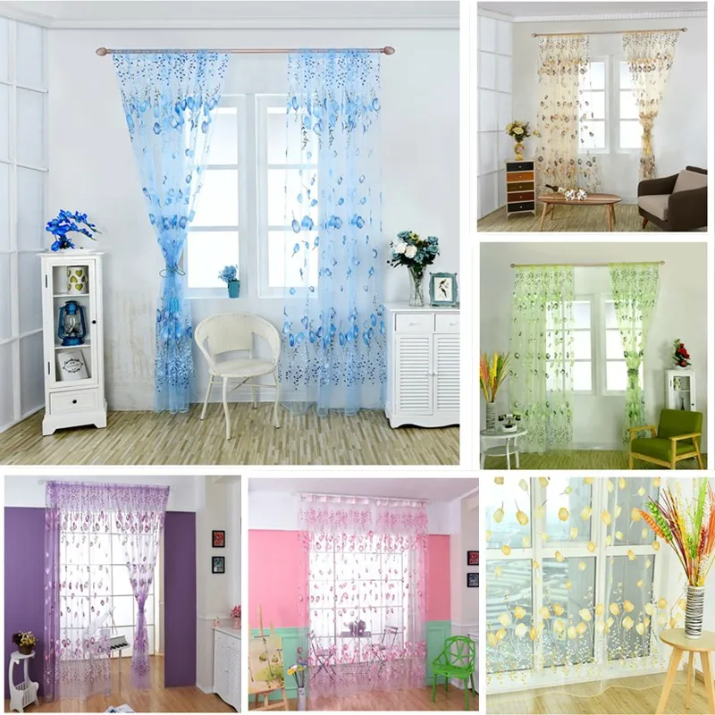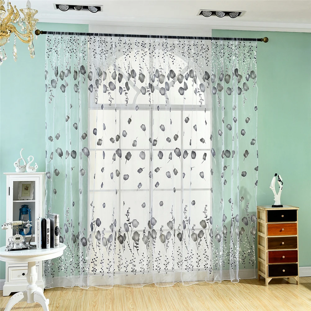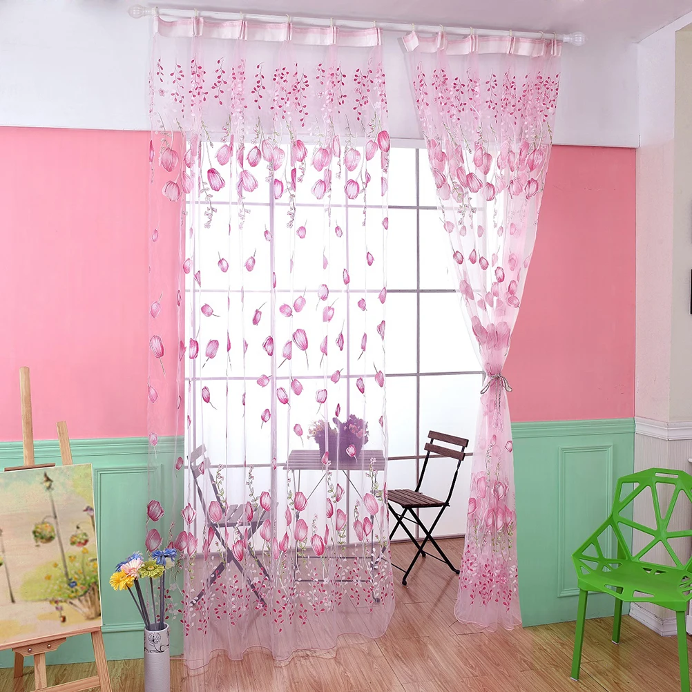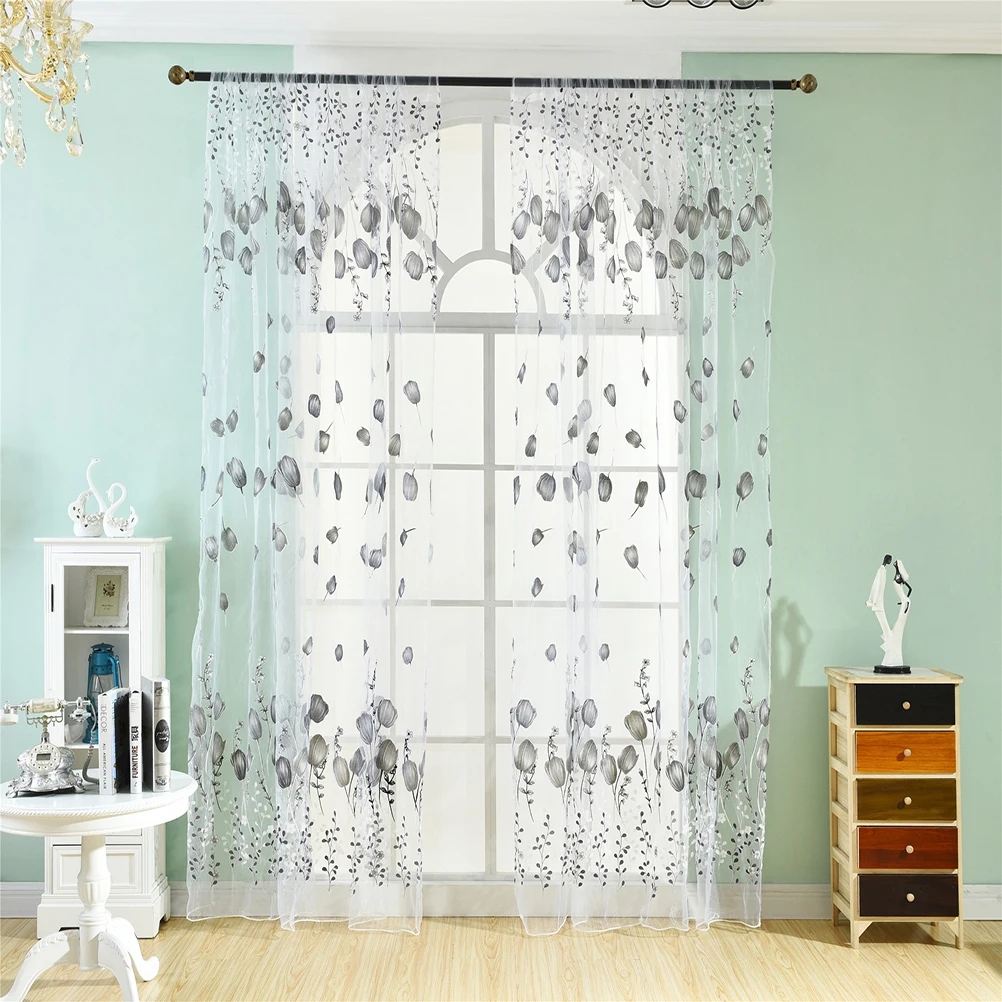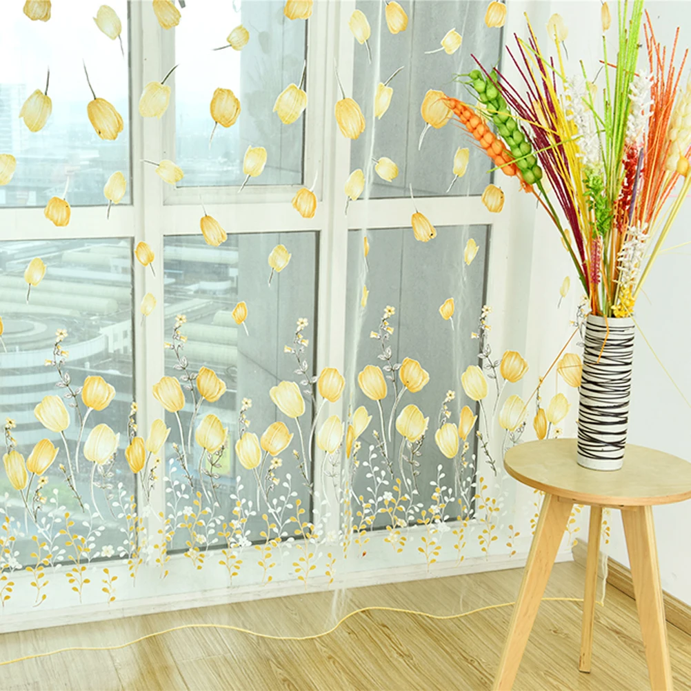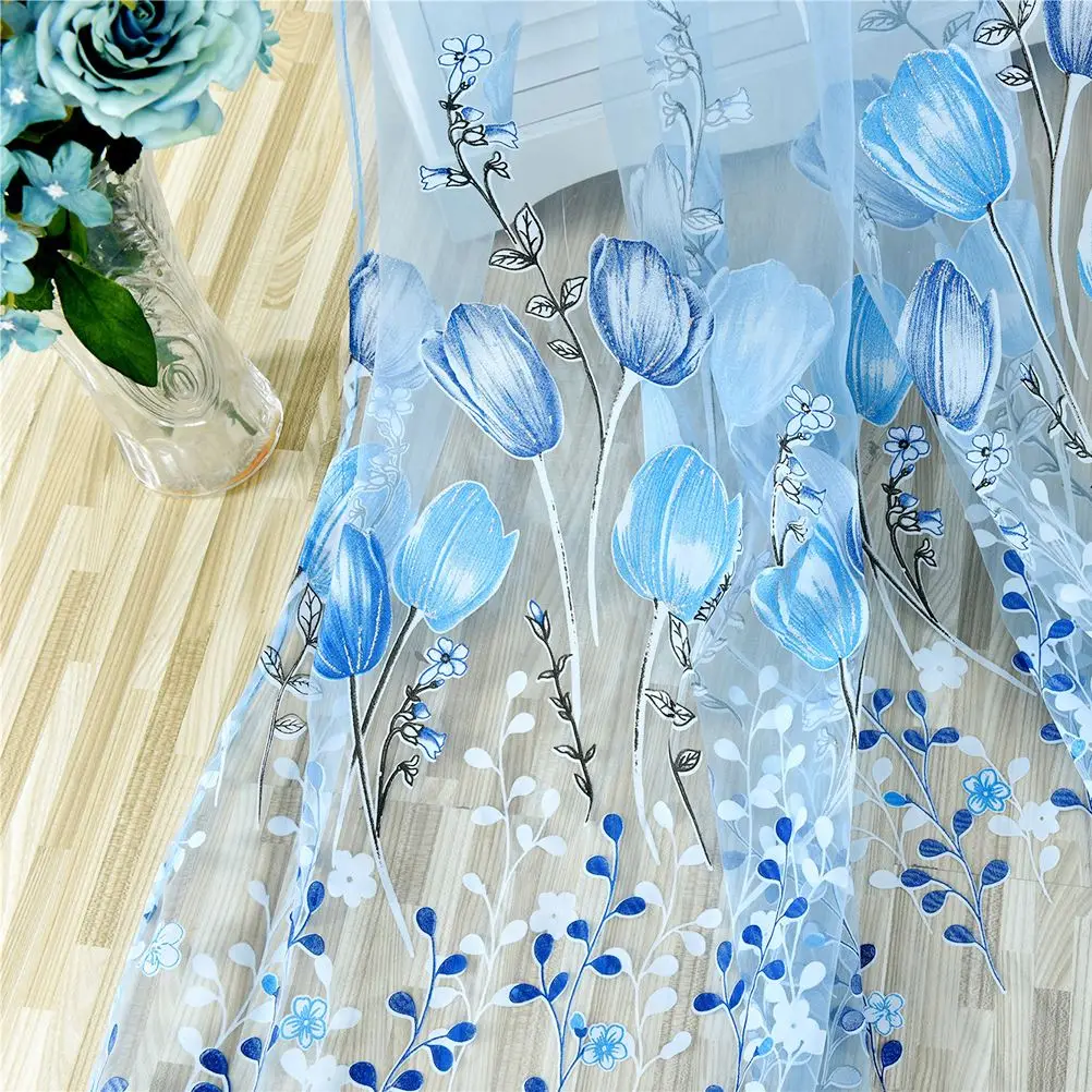 1x100x200 см Прозрачные тюльпаны с цветочным принтом, прозрачные Занавески на окно с кисточками, цветочный принт, тюль, вуаль, дверной шарф, занавески для спальни, гостиной, домашнего декора (синий)