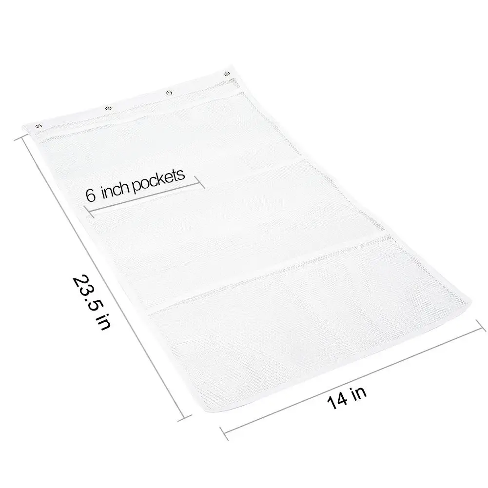 Организуйте душ или ванну с помощью этого шестикарманного сетчатого органайзера, который просто прикрепляется к существующему кольцу для душевой.