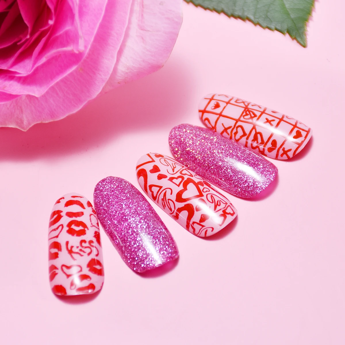 2. Нанесите лак для ногтей на желаемое изображение в пластине. (Рекомендуется: Используйте однотонный лак для ногтей, чтобы текстура была толще, чем другие лаки для ногтей)