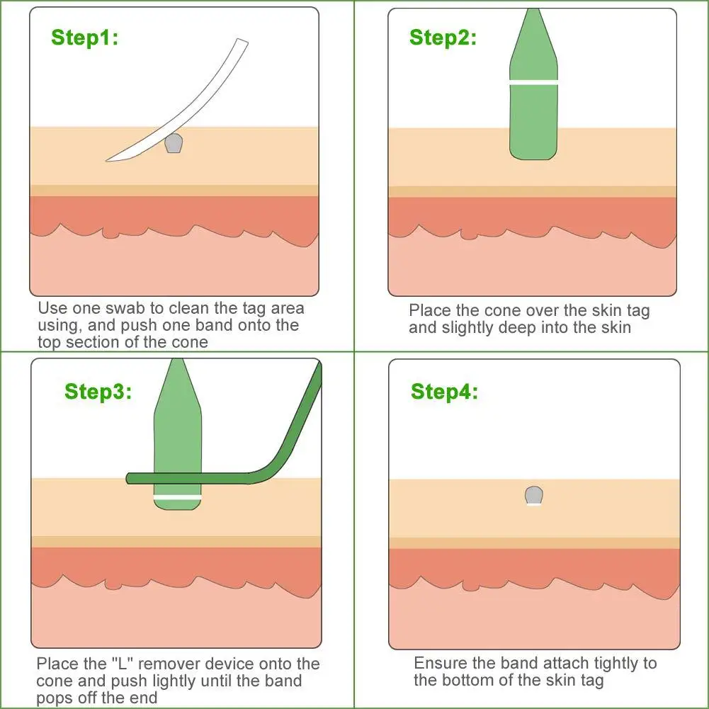 Устройство для удаления этикеток ● Наше устройство для удаления шкуры-это инновационный дизайн, который может быстро и безопасно удалять шкуру. ● Данный прибор для удаления работает, остановляя подачу крови на бирках кожи, что приведет к спаданию бирки в течение нескольких дней. ● Средство для удаления бирки кожи может использоваться на всех бирках, средних и больших размеров. ● Он предназначен для этикеток на лице и теле, но мы не рекомендуем использовать его вокруг чувствительной области глаз. Посылка включен: 1 x конус 1 x L устройство 10 x полос 10 x очистительные тампоны 1 x Руководство по эксплуатации ⚠Примечание: ● Подходит для этикеток с самой широкой стороной, 4-6 мм. ● Если бирка для кожи меньше 4 мм, ремешок может не быть в состоянии плотно держать бирку для кожи. ❗Предупреждения: -- Ленты изготовлены из резины и не подходят для людей с аллергией на каучук. -- Этот комплект не подходит для любых других условий кожи, таких как, бородавок или родинок. -- Пожалуйста, свяжитесь с врачом перед использованием. -Не подходит для детей.