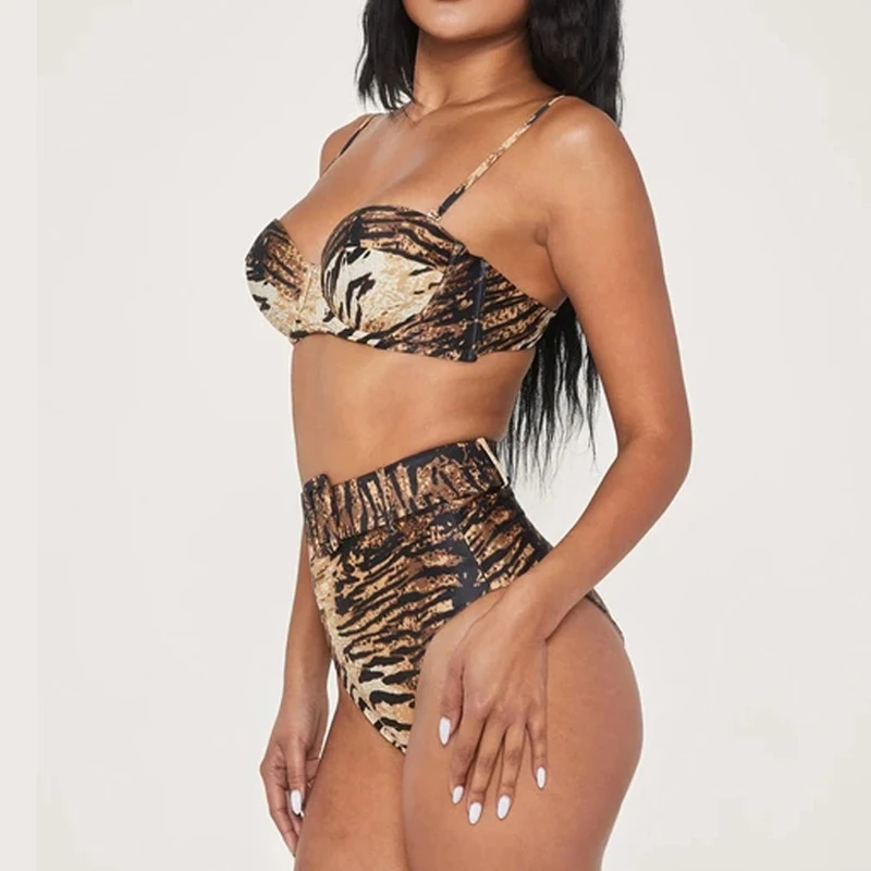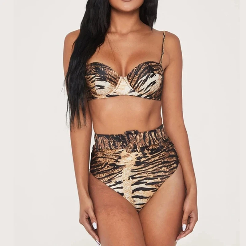 Купальник с высокой талией бикини Леопардовый пуш-ап бикини 2020 Mujer Купальники с ремнями женский купальный костюм леопардовый